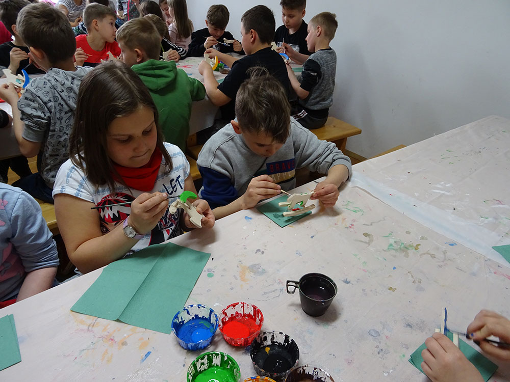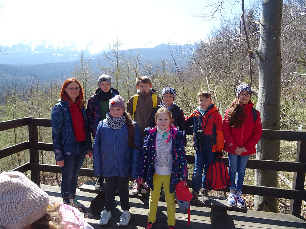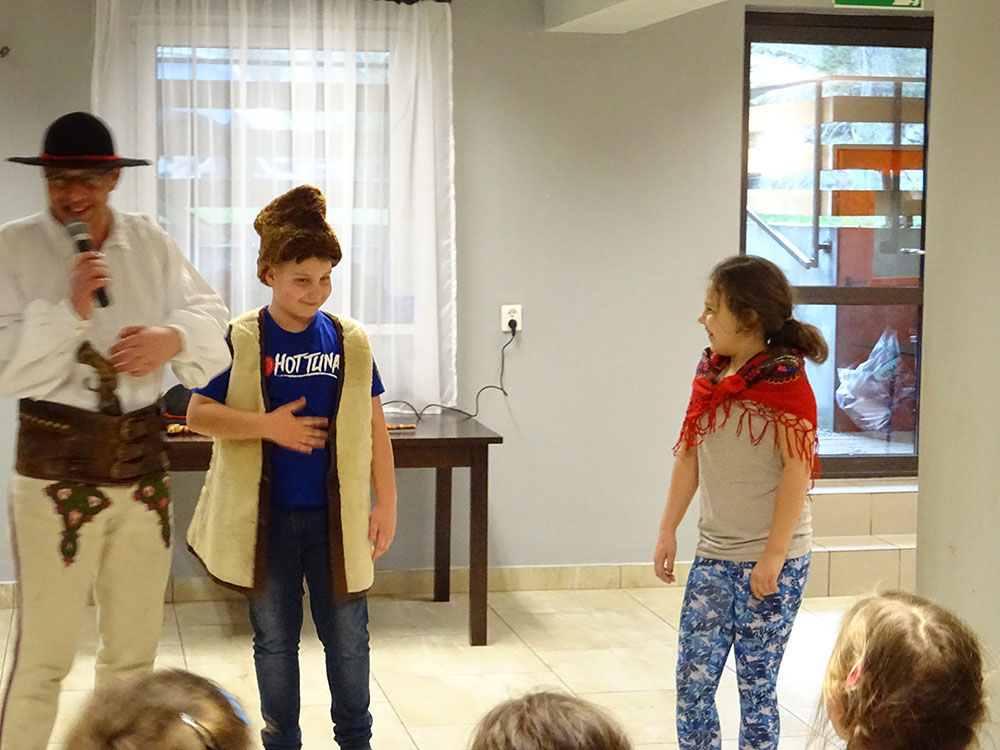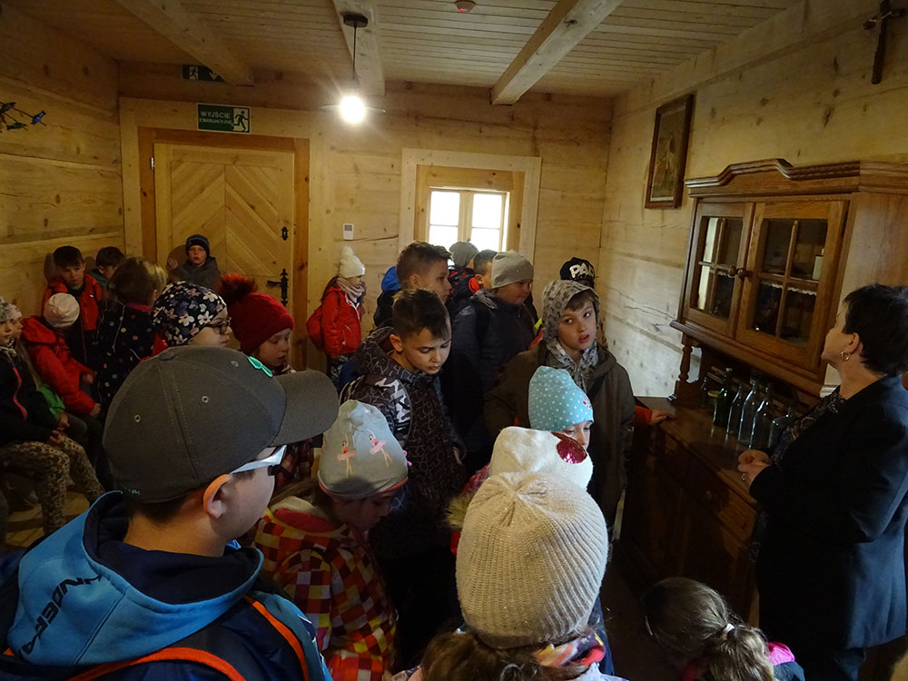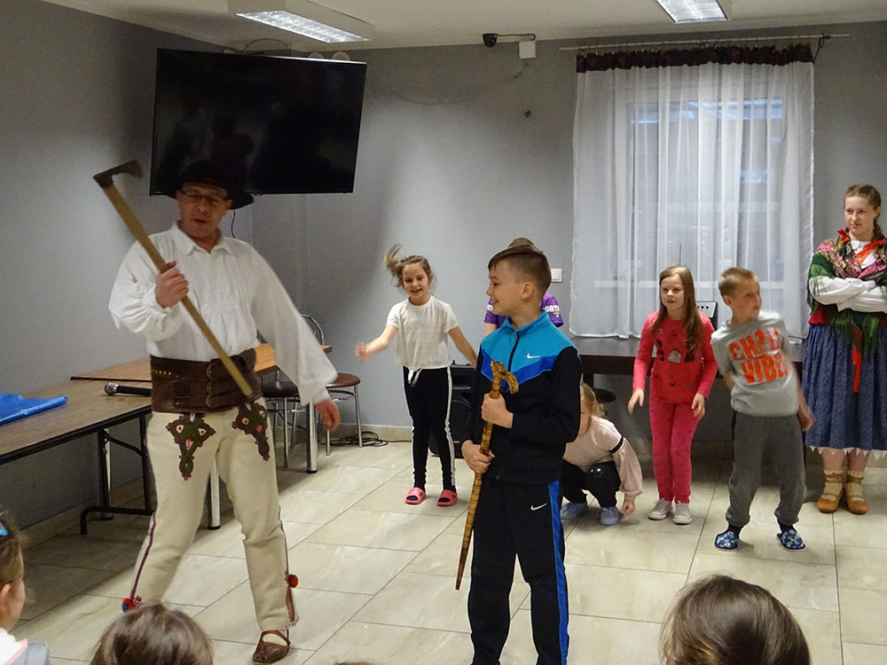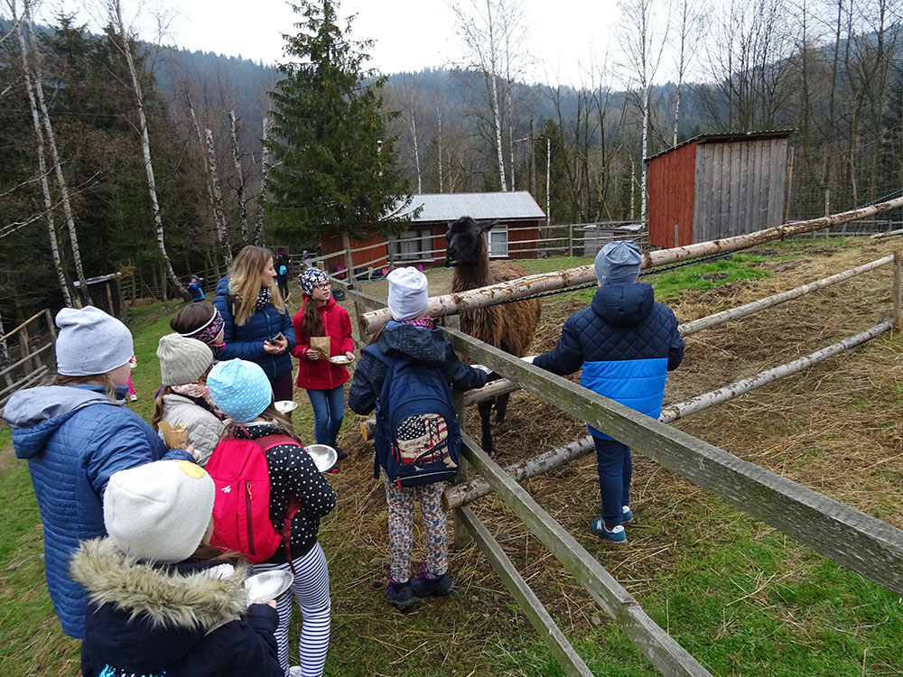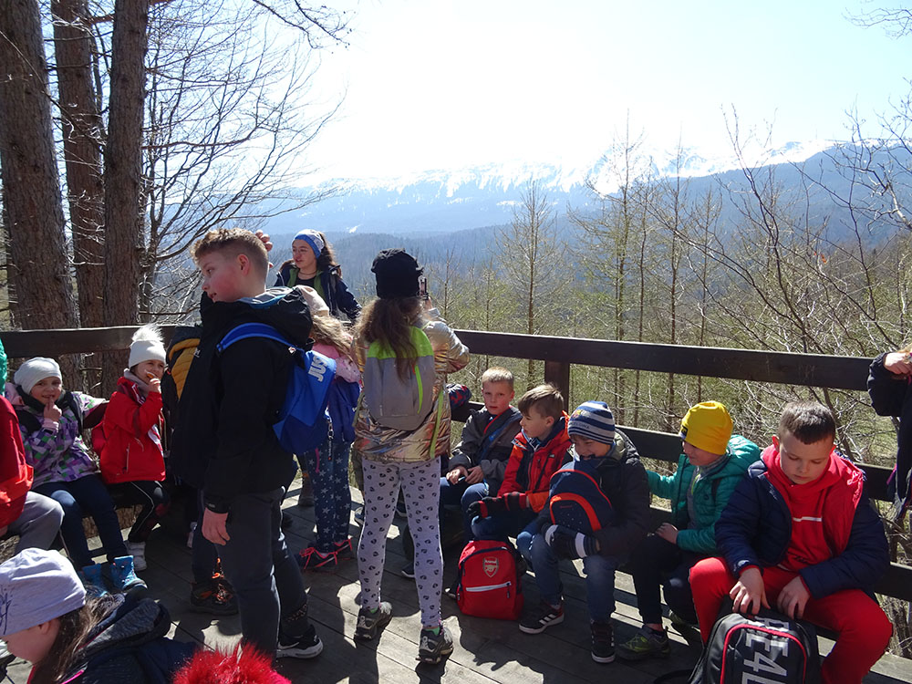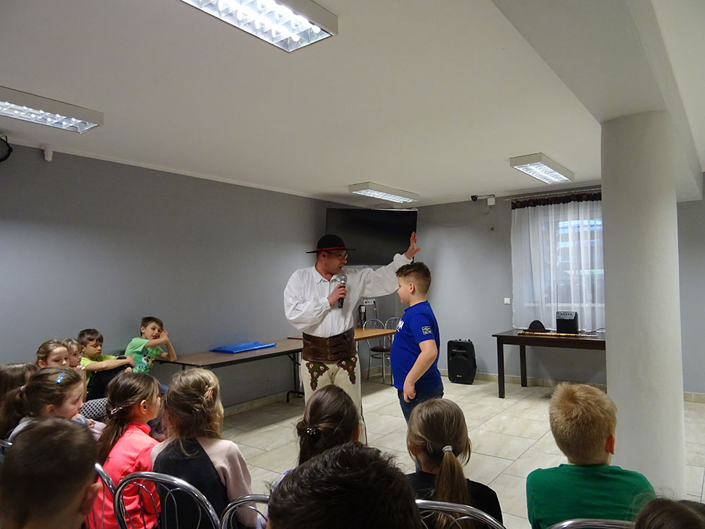 Dnia 15 kwietnia 2019 r. punktualnie o godzinie 8.00 przed szkołą zebrała się 33 – osobowa grupa uczniów z klas I – IV. Ten dzień był długo wyczekiwany przez wszystkich uczestników wyjazdu na trzydniową wycieczkę do Zawoi. Pierwszym punktem programu było wyjście na Przysłop i znajdującą się tam wieżę widokową, z której można podziwiać panoramę na Beskid Śląski i Beskid Żywiecki. Po zejściu uczniowie mogli nakarmić i pogłaskać zwierzęta w sąsiadującej zagrodzie obok wieży. Następnie udaliśmy się do ośrodka, gdzie uczniowie zostali przydzieleni do właściwych pokoi, zanieśli tam swoje walizki, rozpakowali je i nie mogli doczekać się atrakcji. Kolejnym punktem programu były zajęcia z szycia. Niektórzy po raz pierwszy trzymali igłę w dłoni. Pomimo to, świetnie poradzili sobie z tym zadaniem i owieczki z filcu wyszły przepięknie! Każdy swoje dzieło zabrał na pamiątkę do domu. Pogoda w tym dniu sprzyjała więc przed kolacją udaliśmy się na zabawy wokół ośrodka – wielbiciele piłki nożnej mogli rozegrać mecz, a pozostali chętnie pobawili się w berka. Na zakończenie dnia odbyło się spotkanie z miejscowymi góralami, którzy zaprezentowali góralskie stroje, przyśpiewki, ciekawostki, a przede wszystkim góralską gwarę. Pełni wrażeń po całym dniu wszyscy udali się do pokoi na zasłużony odpoczynek.