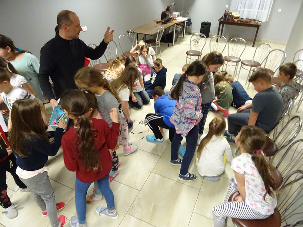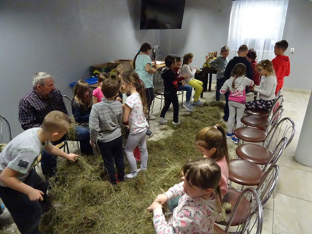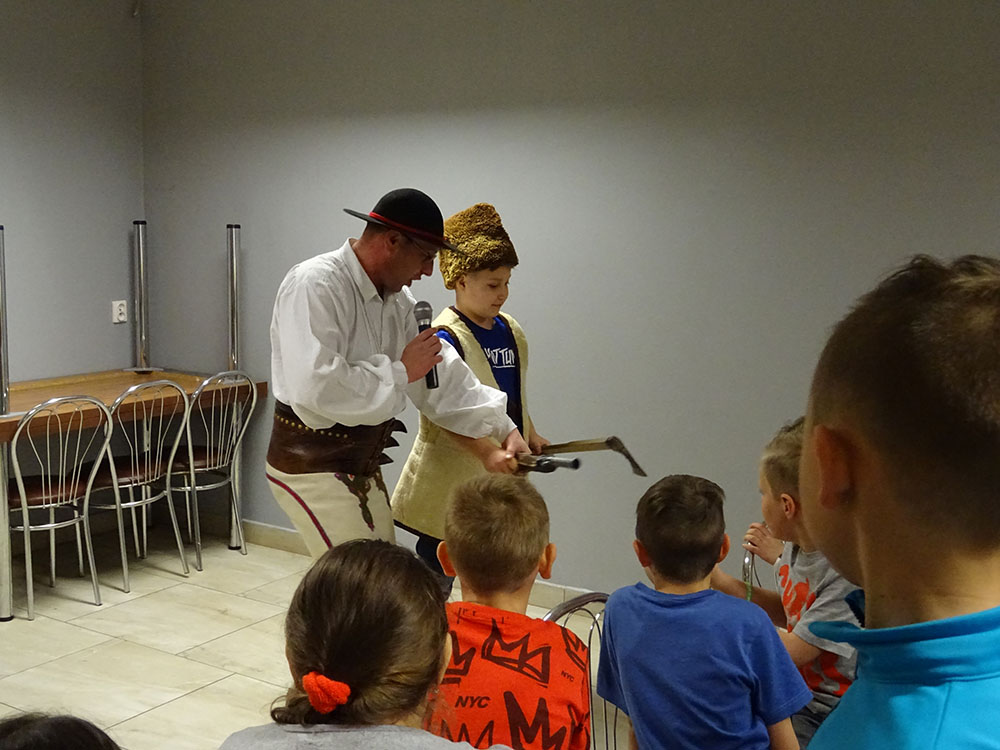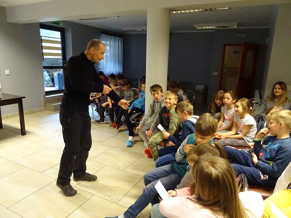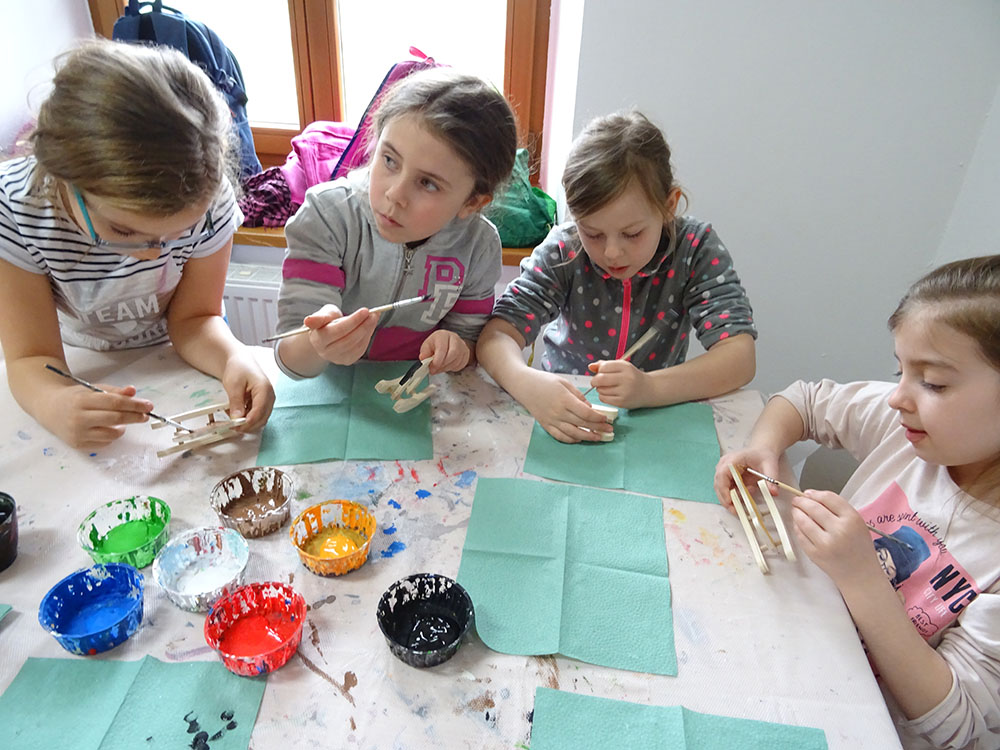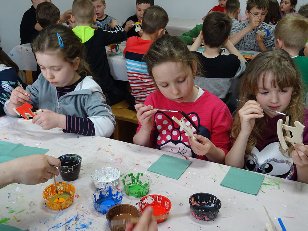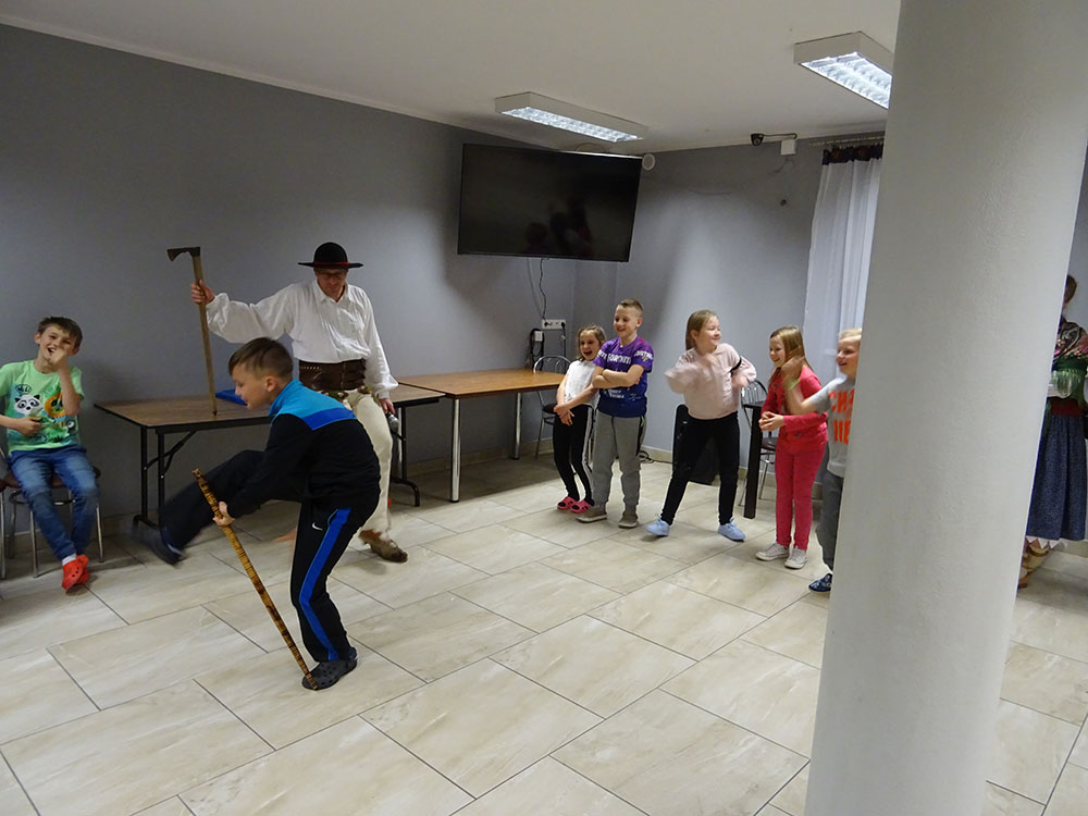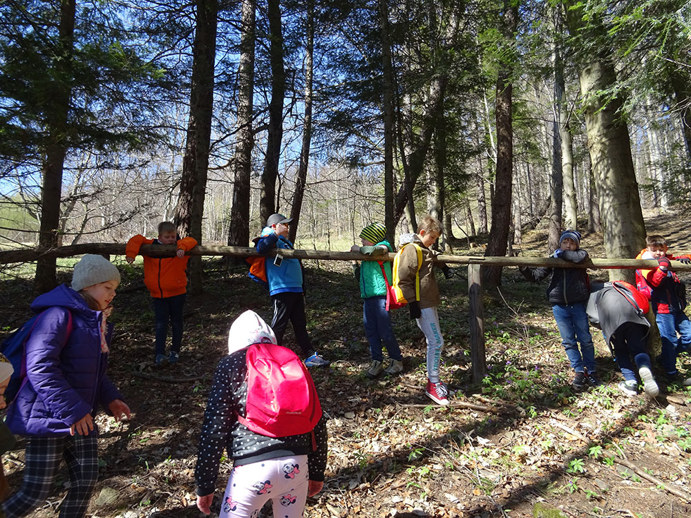 Dnia 15 kwietnia 2019 r. punktualnie o godzinie 8.00 przed szkołą zebrała się 33 – osobowa grupa uczniów z klas I – IV. Ten dzień był długo wyczekiwany przez wszystkich uczestników wyjazdu na trzydniową wycieczkę do Zawoi. Pierwszym punktem programu było wyjście na Przysłop i znajdującą się tam wieżę widokową, z której można podziwiać panoramę na Beskid Śląski i Beskid Żywiecki. Po zejściu uczniowie mogli nakarmić i pogłaskać zwierzęta w sąsiadującej zagrodzie obok wieży. Następnie udaliśmy się do ośrodka, gdzie uczniowie zostali przydzieleni do właściwych pokoi, zanieśli tam swoje walizki, rozpakowali je i nie mogli doczekać się atrakcji. Kolejnym punktem programu były zajęcia z szycia. Niektórzy po raz pierwszy trzymali igłę w dłoni. Pomimo to, świetnie poradzili sobie z tym zadaniem i owieczki z filcu wyszły przepięknie! Każdy swoje dzieło zabrał na pamiątkę do domu. Pogoda w tym dniu sprzyjała więc przed kolacją udaliśmy się na zabawy wokół ośrodka – wielbiciele piłki nożnej mogli rozegrać mecz, a pozostali chętnie pobawili się w berka. Na zakończenie dnia odbyło się spotkanie z miejscowymi góralami, którzy zaprezentowali góralskie stroje, przyśpiewki, ciekawostki, a przede wszystkim góralską gwarę. Pełni wrażeń po całym dniu wszyscy udali się do pokoi na zasłużony odpoczynek.