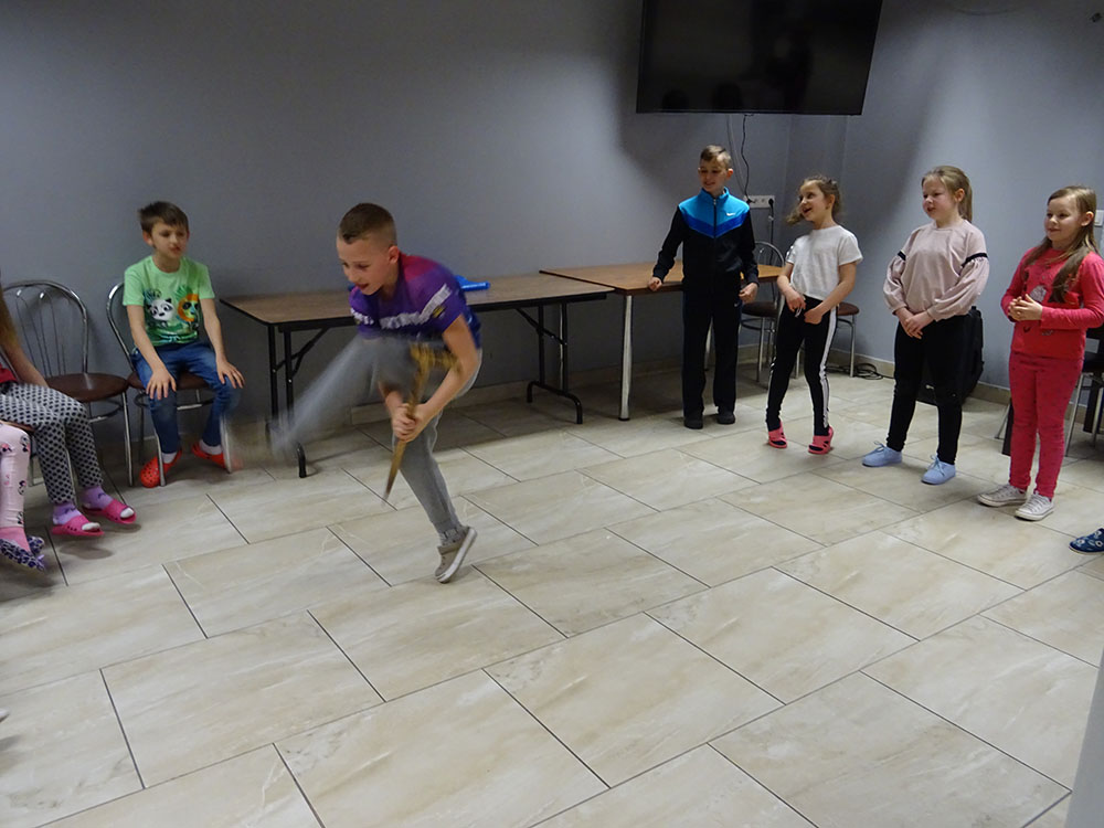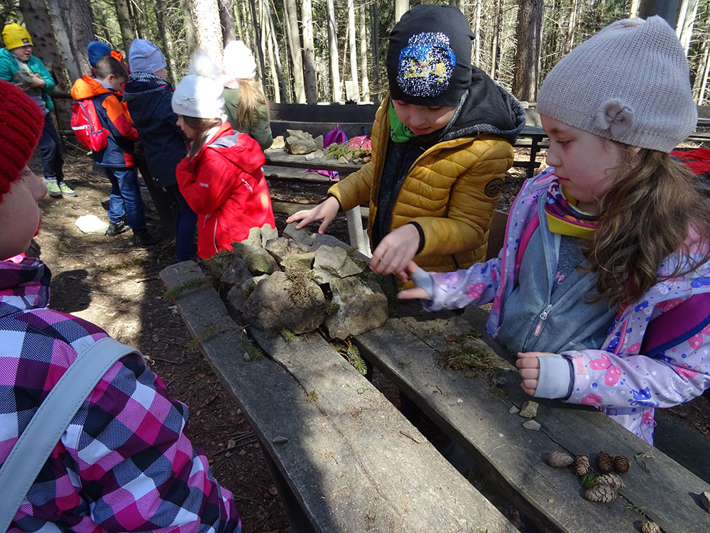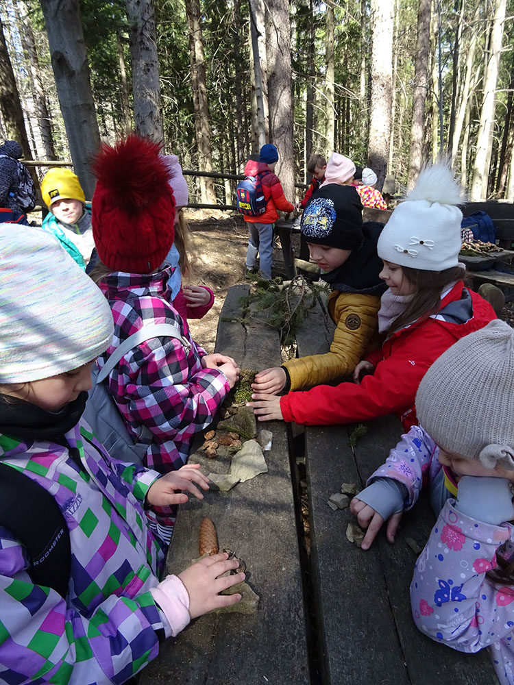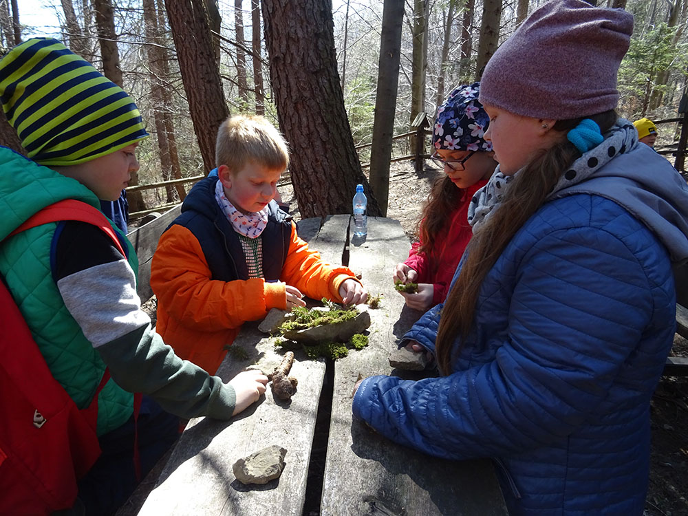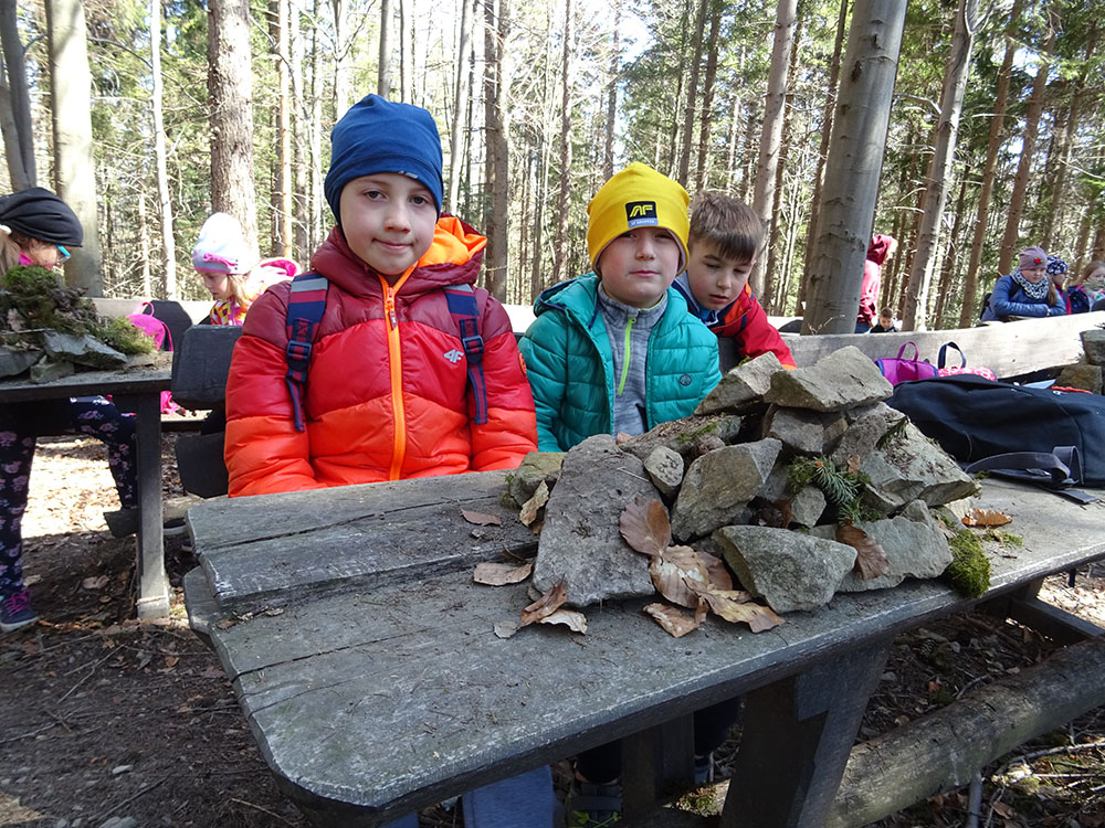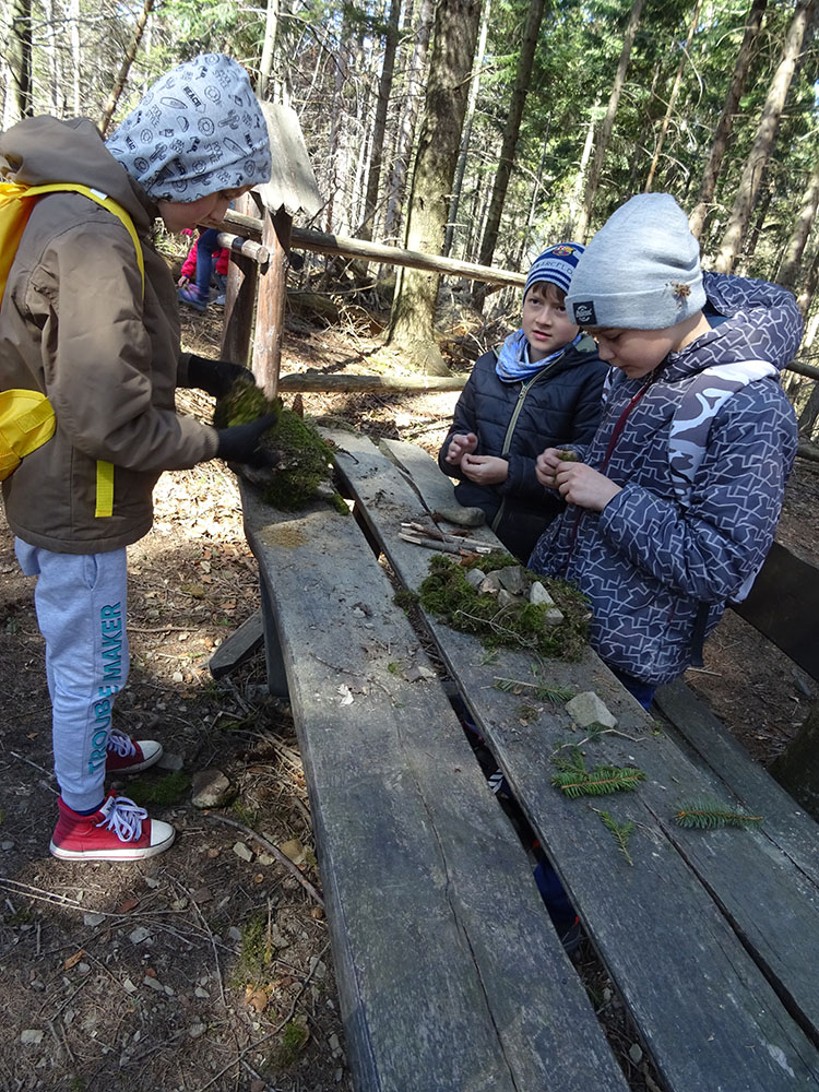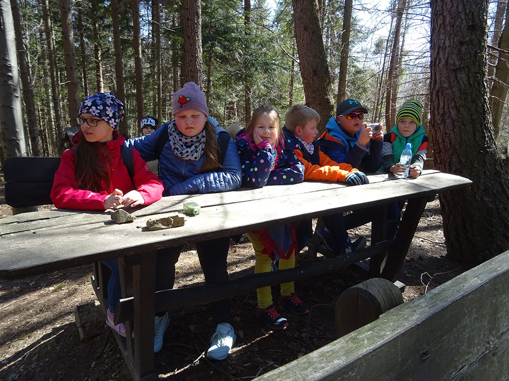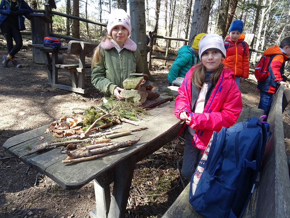 W tym dniu czekała nas górska wyprawa. Słońce pięknie świeciło, a więc pogoda idealna na dłuższy spacer. Zaraz po śniadaniu wraz z Panią Przewodnik wybraliśmy się na Mokry Kozub. Na szczycie znajdowała się „Leśna Klasa” – stoliki, ławki, tablica – prawie jak w szkole. Po krótkiej opowieści o Babiej Górze uczniowie w grupach budowali swoje „Babie Góry” z dostępnych materiałów. Wyobraźnia zadziałała, a efekty zostały uwiecznione na zdjęciach. Wyprawa była długa, mimo to wszyscy z uśmiechem na twarzy wrócili do ośrodka. Po obiedzie zebraliśmy się na zajęciach z „Eko – sianka”. Tym razem każdy wykonał sobie na pamiątkę wielkanocnego zajączka . Po tych zajęciach udaliśmy się do pokoi na krótki odpoczynek. Kolejną atrakcją był wirtualny spacer po Babiej Górze, Pan Wojtek opowiedział co można spotkać po drodze na ten szczyt, jaką ma wysokość, ile się na niego wychodzi i kiedy najlepiej wybrać się na taką wędrówkę. Nauczyliśmy się też śpiewać przyśpiewki po góralsku. Wydawać by się mogło, że jak na jeden dzień to wystarczyło by atrakcji, jednak nie. Po kolacji nastąpił czas zabawy. Po podzieleniu na grupy uczniowie brali udział w różnych konkurencjach -rozwiązywali zadania, odpowiadali na pytania w quizie, grali na instrumentach, a na koniec każdy dostał nagrodę w postaci cukierków. Zmęczeni, ale zadowoleni wszyscy udali się do pokoi – tam na każdego czekało jeszcze jedno zadanie – pakowanie. Gdyż następnego dnia wczesnym rankiem opuszczaliśmy Zawoję.