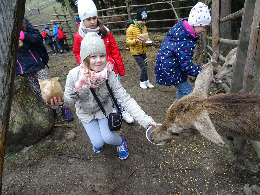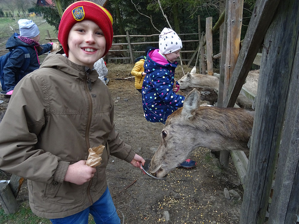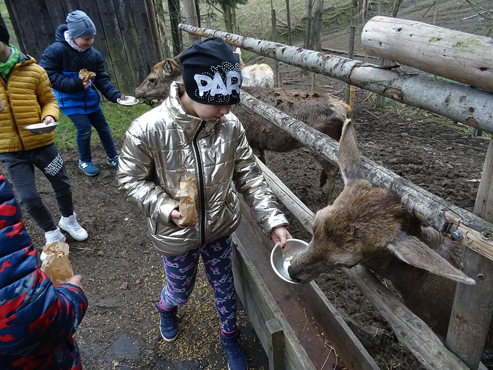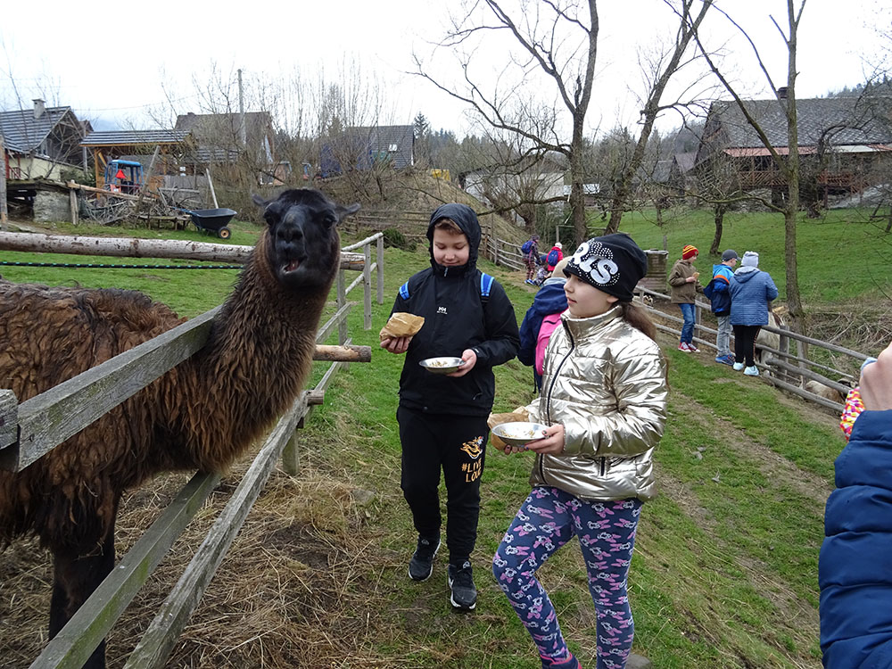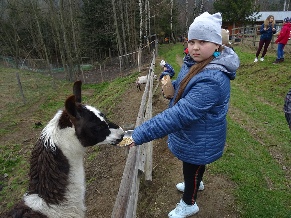 Pobudka, śniadanie, zapakowanie walizek do autokaru i wyjazd w drogę powrotną, ale po drodze jeszcze dwie atrakcje. Pierwszy przystanek „Park Czarnego Daniela” czyli Zawojskie Safari. Kilka ważnych informacji o znajdujących się tam zwierzętach, a potem karmienie i głaskanie. Pogoda w tym dniu nas nie rozpieszczała, więc kiedy zwierzęta zostały nakarmione, udaliśmy się do autokaru i pojechaliśmy do Stryszawy. Tam odwiedziliśmy Beskidzkie Centrum Zabawki Drewnianej. Zwiedzanie, trochę historii, zabawa, a na koniec własnoręczne zdobienie drewnianej zabawki i tym samym kolejna pamiątka z wycieczki.