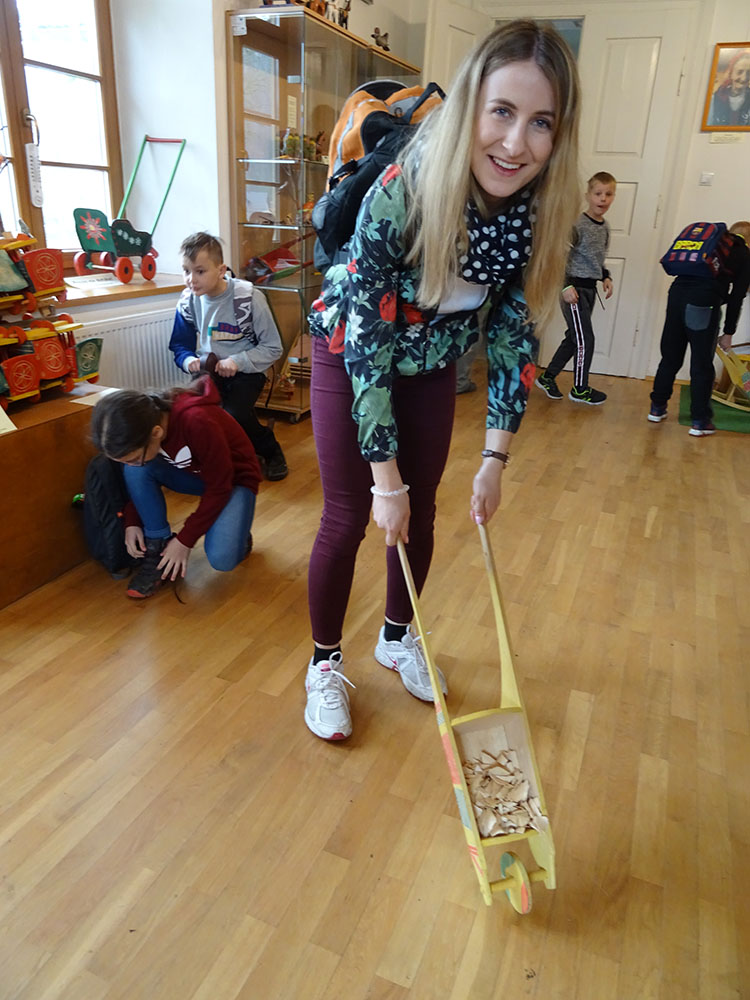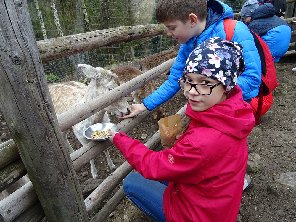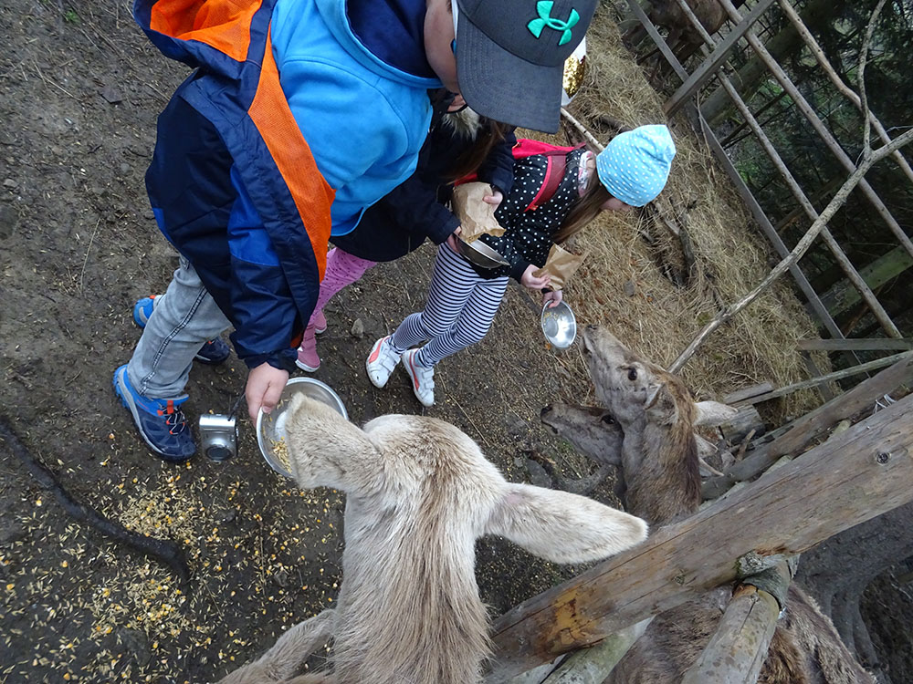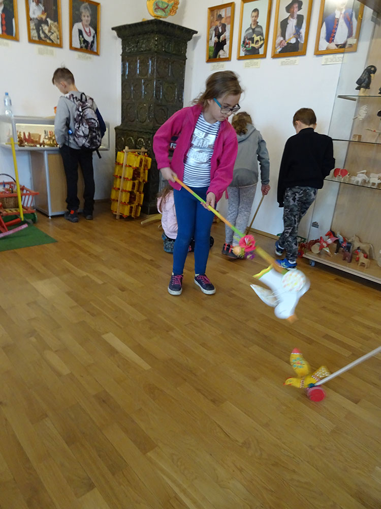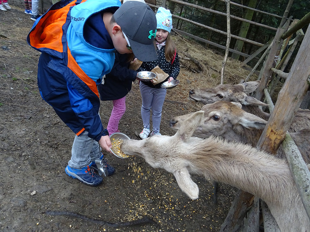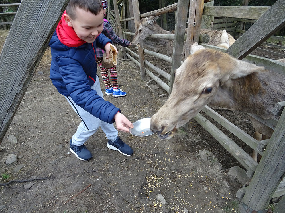 Pobudka, śniadanie, zapakowanie walizek do autokaru i wyjazd w drogę powrotną, ale po drodze jeszcze dwie atrakcje. Pierwszy przystanek „Park Czarnego Daniela” czyli Zawojskie Safari. Kilka ważnych informacji o znajdujących się tam zwierzętach, a potem karmienie i głaskanie. Pogoda w tym dniu nas nie rozpieszczała, więc kiedy zwierzęta zostały nakarmione, udaliśmy się do autokaru i pojechaliśmy do Stryszawy. Tam odwiedziliśmy Beskidzkie Centrum Zabawki Drewnianej. Zwiedzanie, trochę historii, zabawa, a na koniec własnoręczne zdobienie drewnianej zabawki i tym samym kolejna pamiątka z wycieczki.