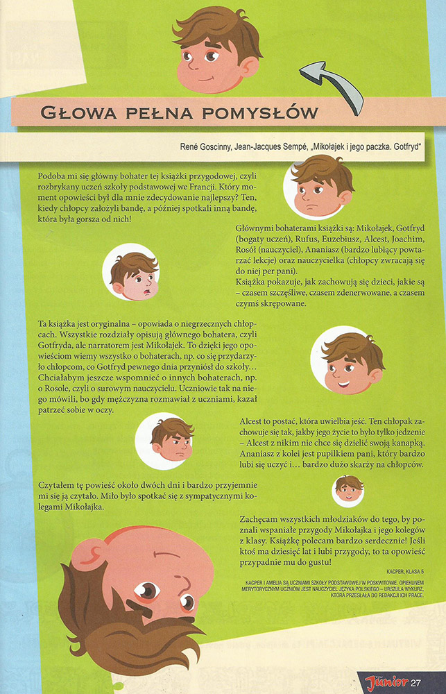„Głowa pełna pomysłów” to recenzja książki „Mikołajek i jego paczka. Gotfryd”, której autorem jest Kacper Pukło.