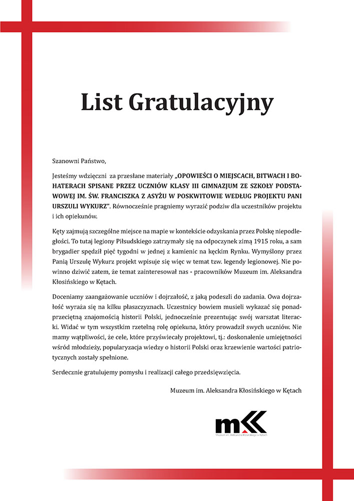 Wszystkim uczestnikom projektowego przedsięwzięcia serdecznie gratuluję.