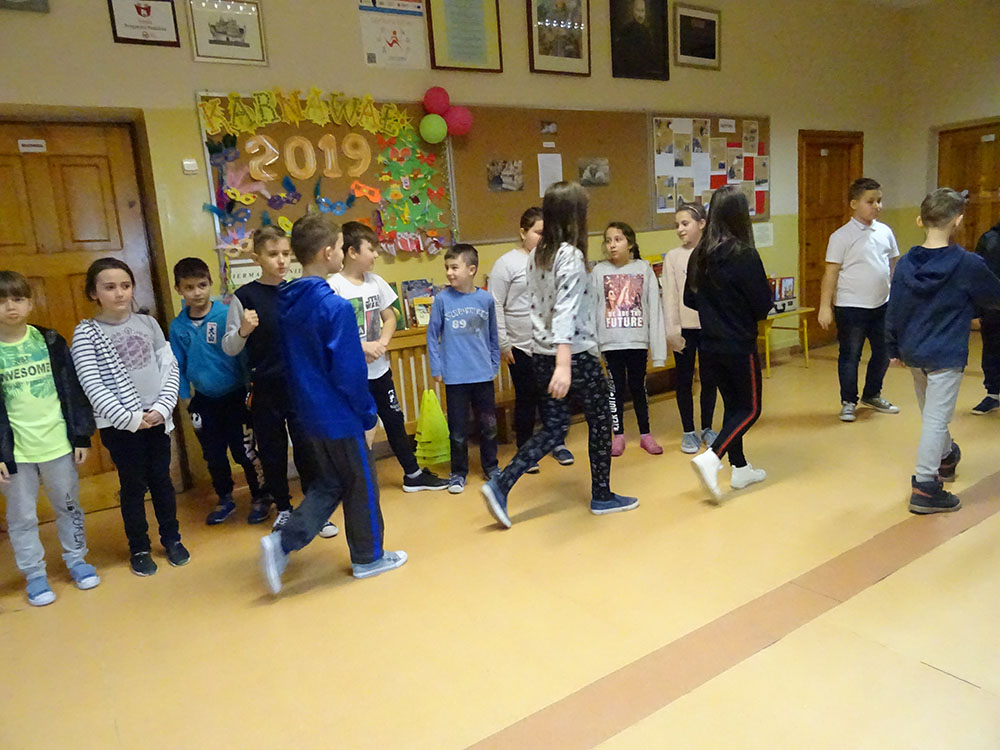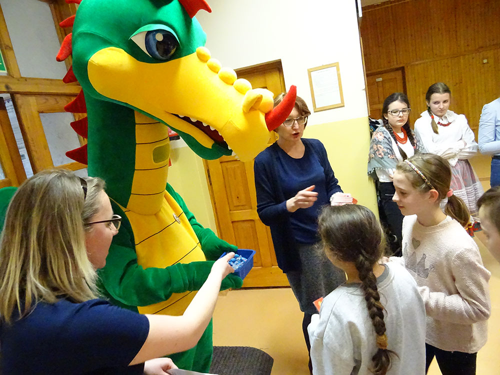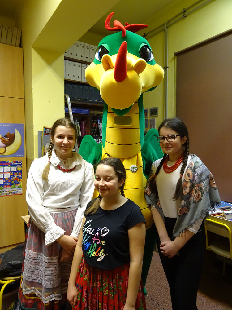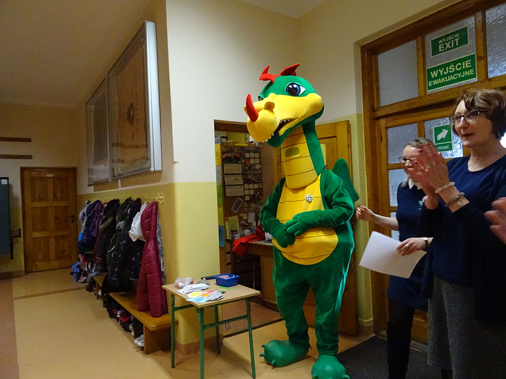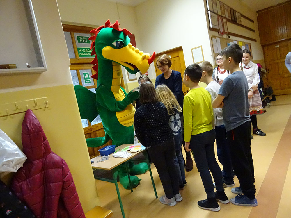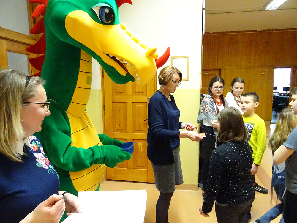 11 lutego uczniowie klasy III i IV uczestniczyli w grze integracyjnej „Smocze Igrzyska”. Edukacyjna zabawa została przygotowana w formie gry czytelniczej na podstawie publikacji „Opowieści z Doliny Dłubni. Historie znane i mniej znane oraz te nigdy nie opowiedziane” autorstwa Katarzyny Nogieć. Uczniowie podzieleni na pięć drużyn zmagali się z zadaniami opracowanymi przez starsze koleżanki z klasy VIII, a były to: pytania testowe, kalambury, krzyżówka, układanki, praca plastyczno-techniczna „Smocze jajo” wraz z prezentacją oraz specjalnie przygotowana prezentacja „Spacer z Dłubniczkiem po Dolinie Dłubni” z kilkoma pytaniami. Gra przebiegała w przemiłej atmosferze, w duchu zdrowej rywalizacji. Każda drużyna wykazała się znakomitą znajomością legend i historii z naszych okolic, więc różnice punktowe były niewielkie. Nad całością przedsięwzięcia czuwały panie: Katarzyna Nogieć i Karolina Ziarko, wspomagane przez głównego jurora w osobie pani dyrektor Anny Rerak. Na koniec wszyscy uczestnicy otrzymali drobne upominki i nagrody, które osobiście wręczył gość specjalny - Smok Wawelski. Przybył do nas prosto z legendarnego grodu Kraka dzięki uprzejmości firmy ZiZ Centrum Edukacji – za co serdecznie dziękujemy.