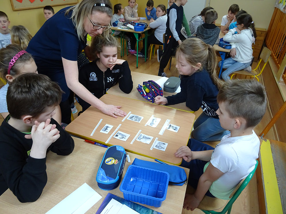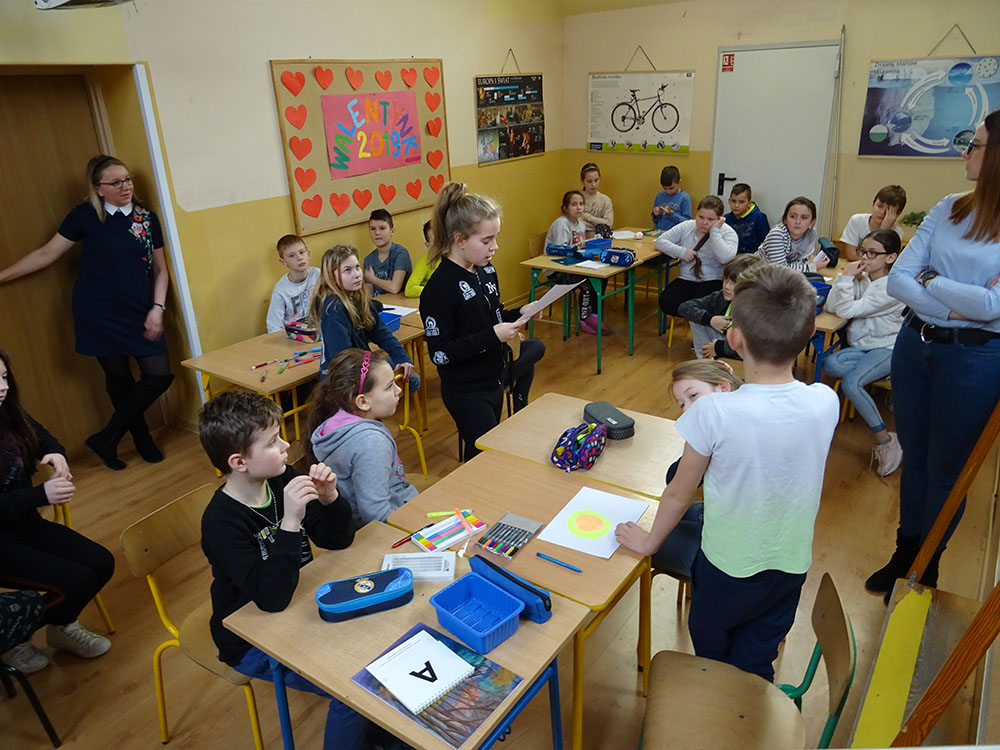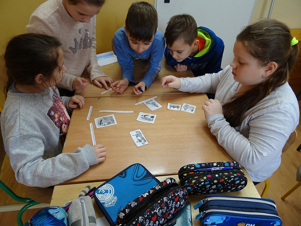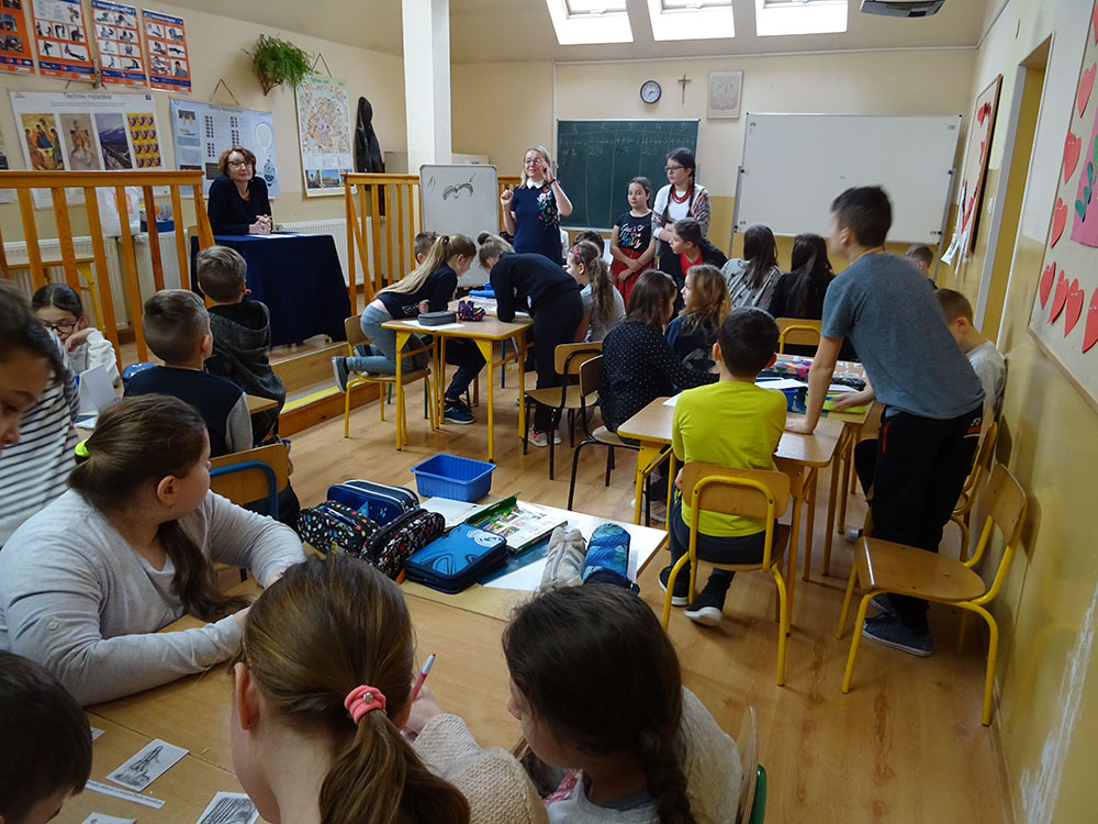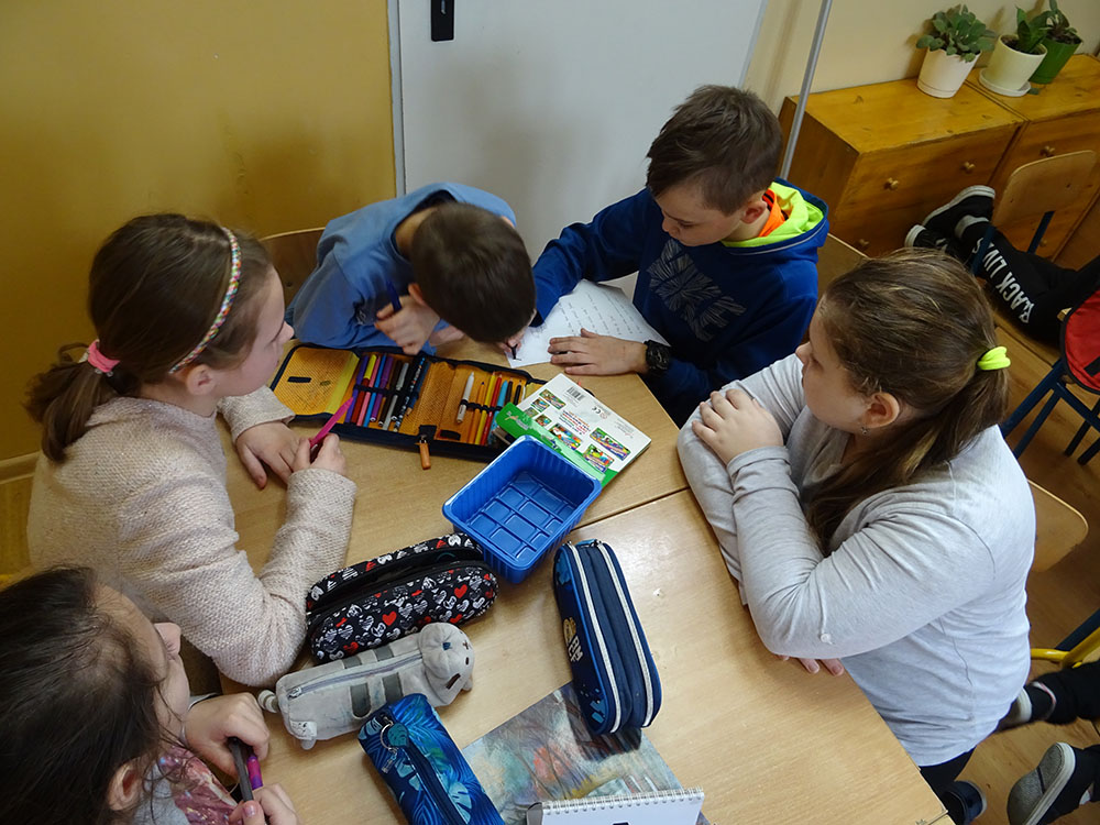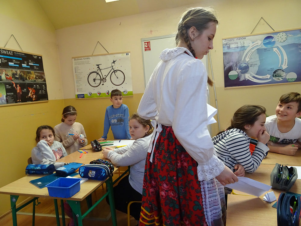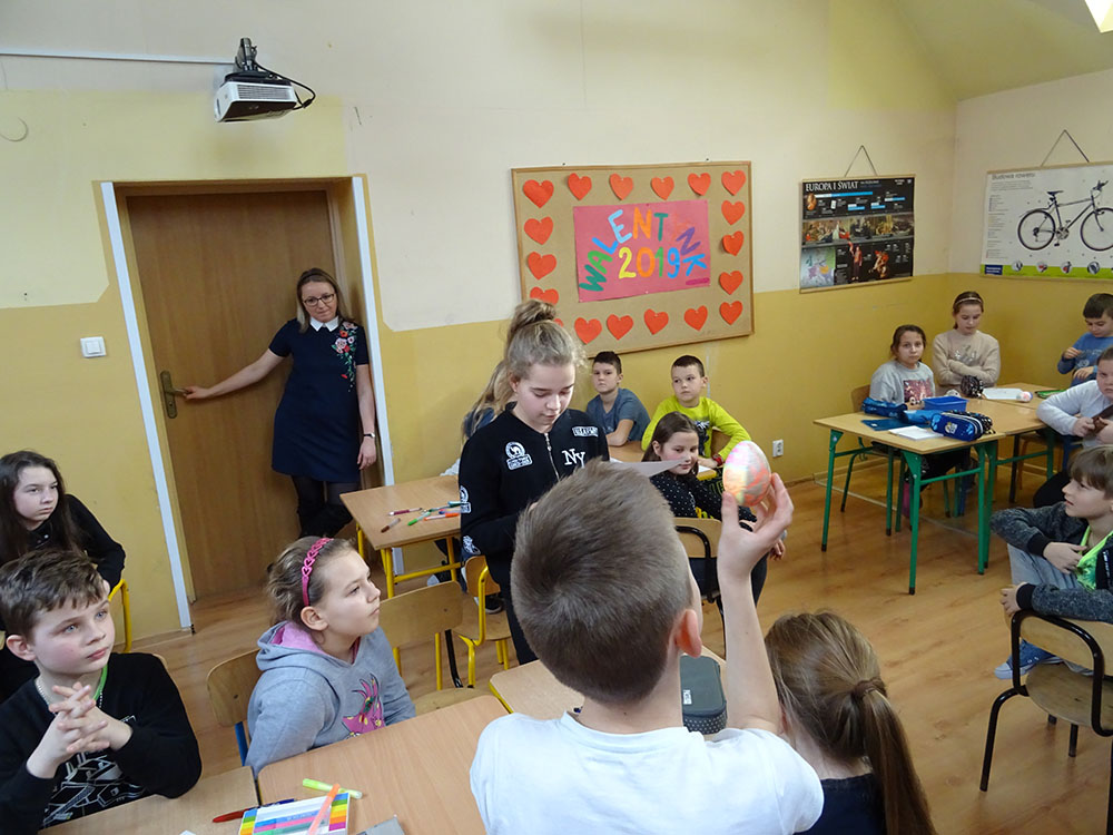 11 lutego uczniowie klasy III i IV uczestniczyli w grze integracyjnej „Smocze Igrzyska”. Edukacyjna zabawa została przygotowana w formie gry czytelniczej na podstawie publikacji „Opowieści z Doliny Dłubni. Historie znane i mniej znane oraz te nigdy nie opowiedziane” autorstwa Katarzyny Nogieć. Uczniowie podzieleni na pięć drużyn zmagali się z zadaniami opracowanymi przez starsze koleżanki z klasy VIII, a były to: pytania testowe, kalambury, krzyżówka, układanki, praca plastyczno-techniczna „Smocze jajo” wraz z prezentacją oraz specjalnie przygotowana prezentacja „Spacer z Dłubniczkiem po Dolinie Dłubni” z kilkoma pytaniami. Gra przebiegała w przemiłej atmosferze, w duchu zdrowej rywalizacji. Każda drużyna wykazała się znakomitą znajomością legend i historii z naszych okolic, więc różnice punktowe były niewielkie. Nad całością przedsięwzięcia czuwały panie: Katarzyna Nogieć i Karolina Ziarko, wspomagane przez głównego jurora w osobie pani dyrektor Anny Rerak. Na koniec wszyscy uczestnicy otrzymali drobne upominki i nagrody, które osobiście wręczył gość specjalny - Smok Wawelski. Przybył do nas prosto z legendarnego grodu Kraka dzięki uprzejmości firmy ZiZ Centrum Edukacji – za co serdecznie dziękujemy.