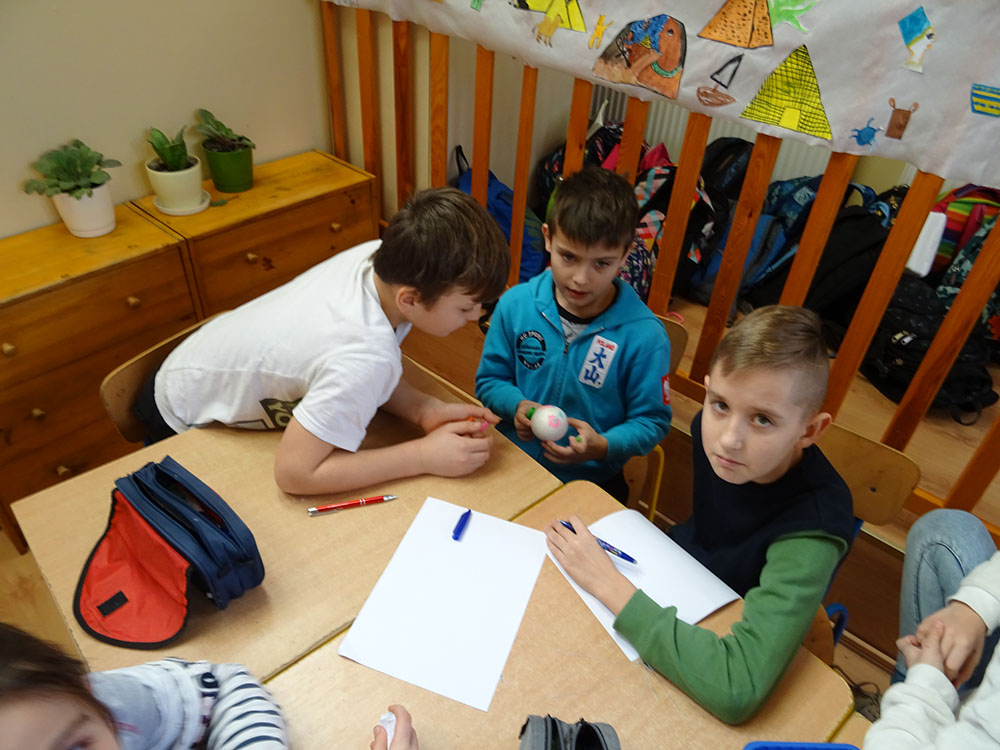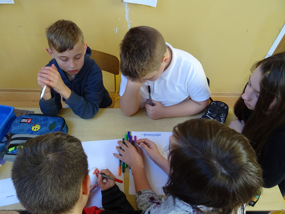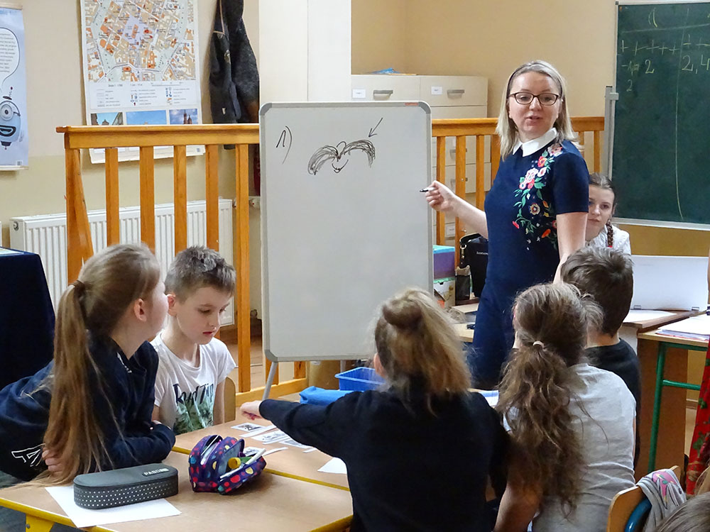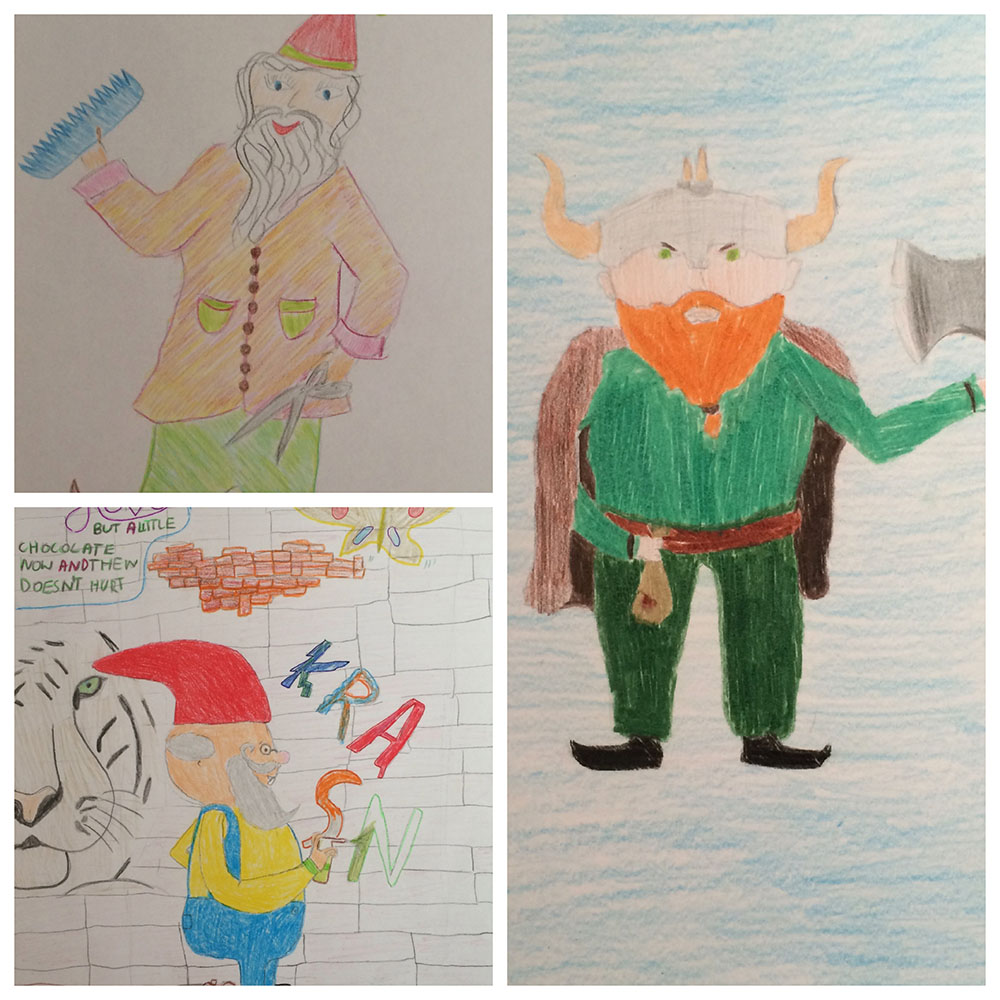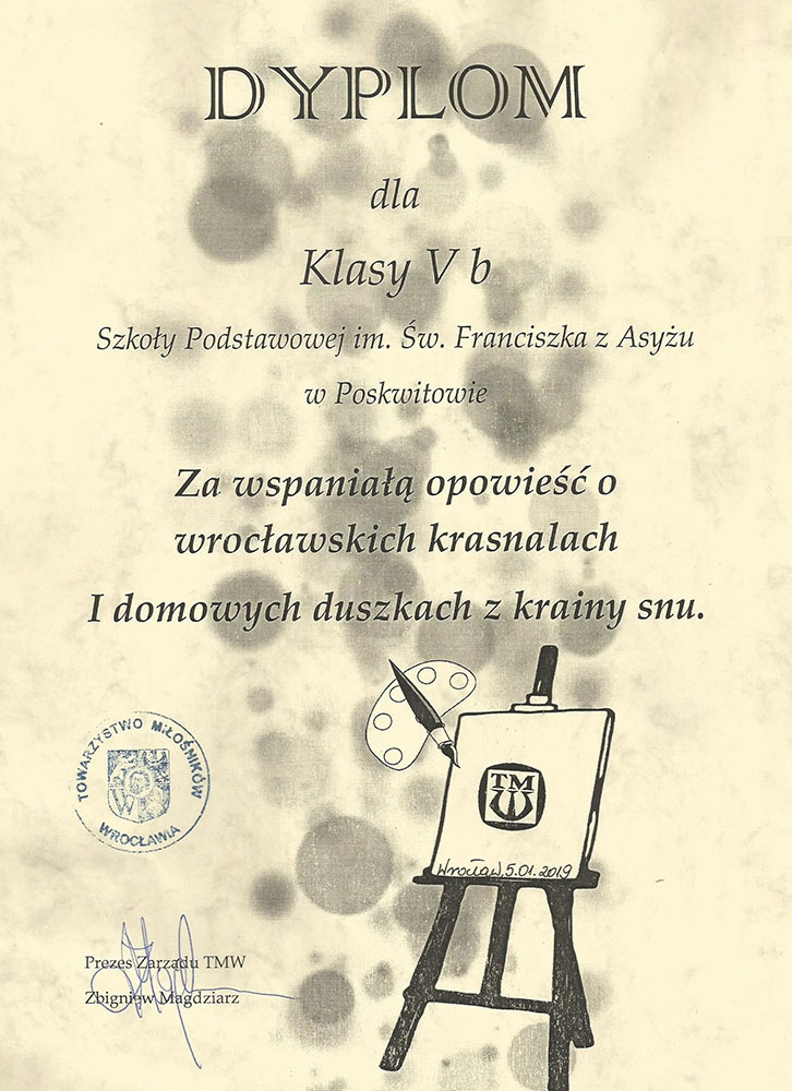 Uczniowie klasy VB realizowali na zajęciach języka polskiego projekt edukacyjny „Krasnal na karuzeli”. Redagowali opowieści o wrocławskich skrzatach i domowych duszkach z krainy snu, tworzyli ilustracje, makiety, wizytówki.