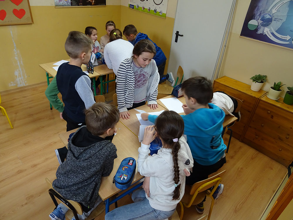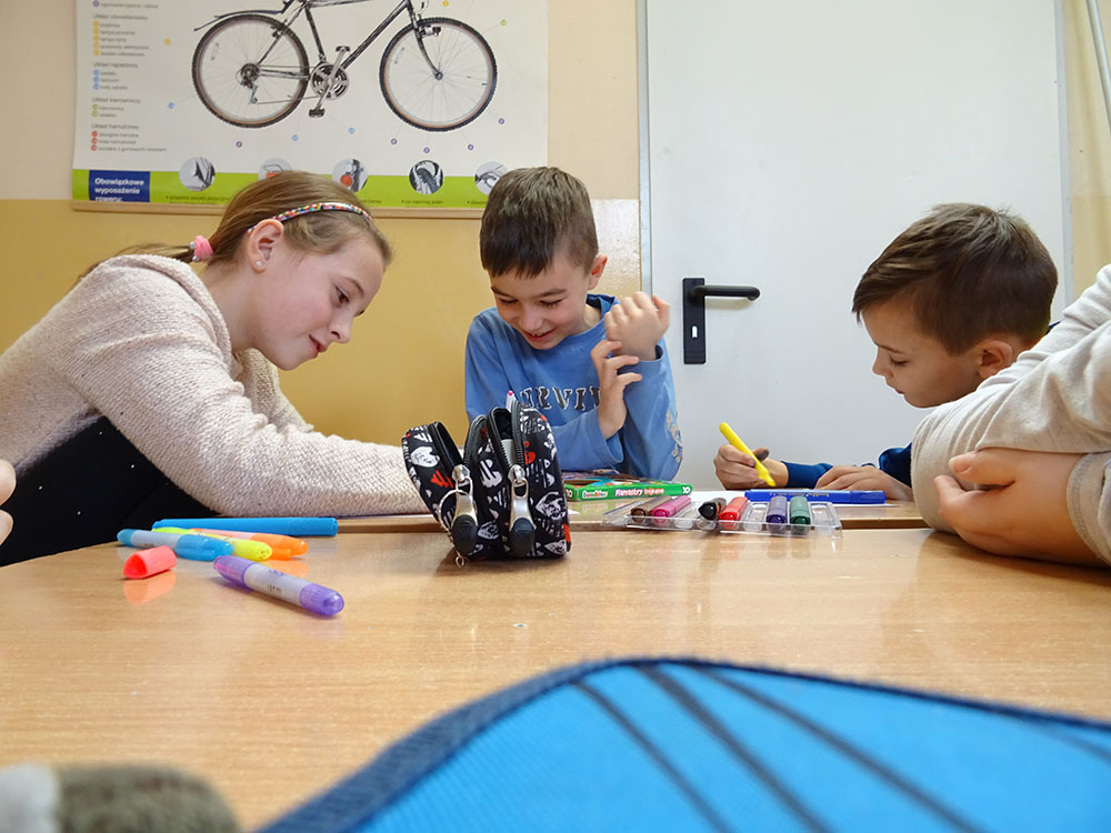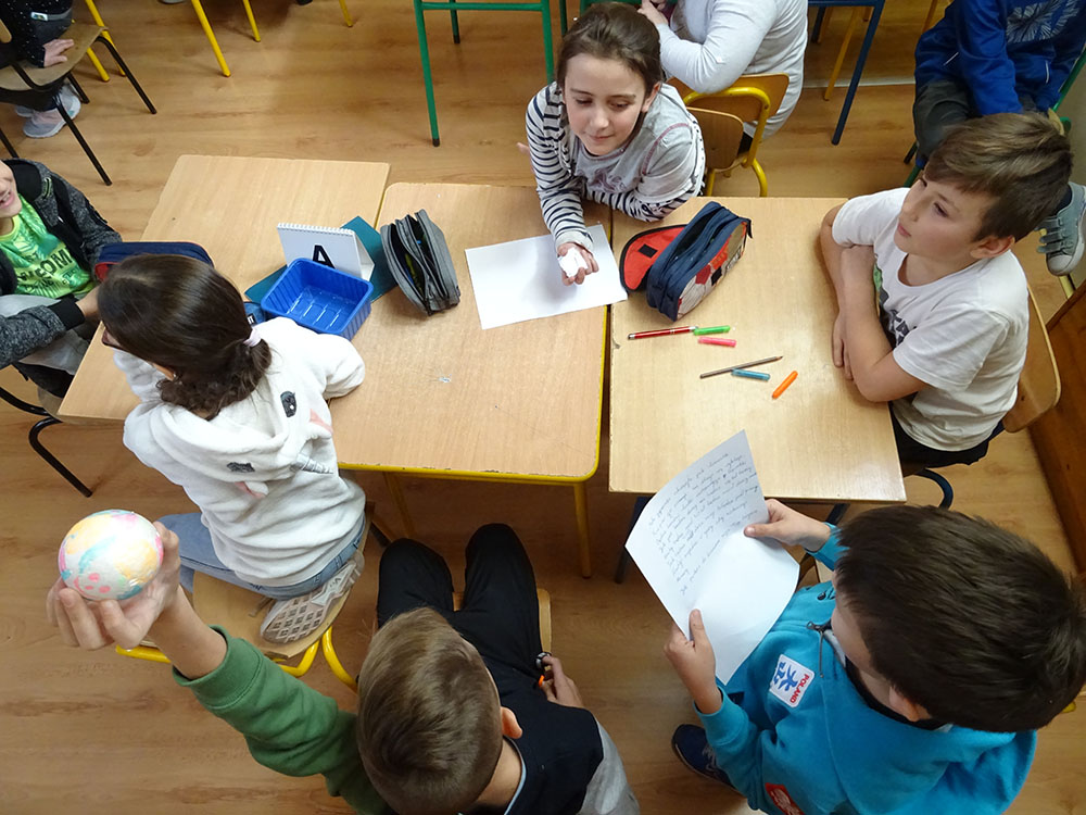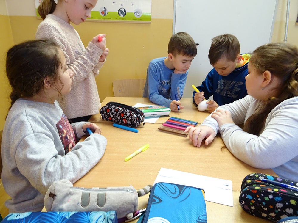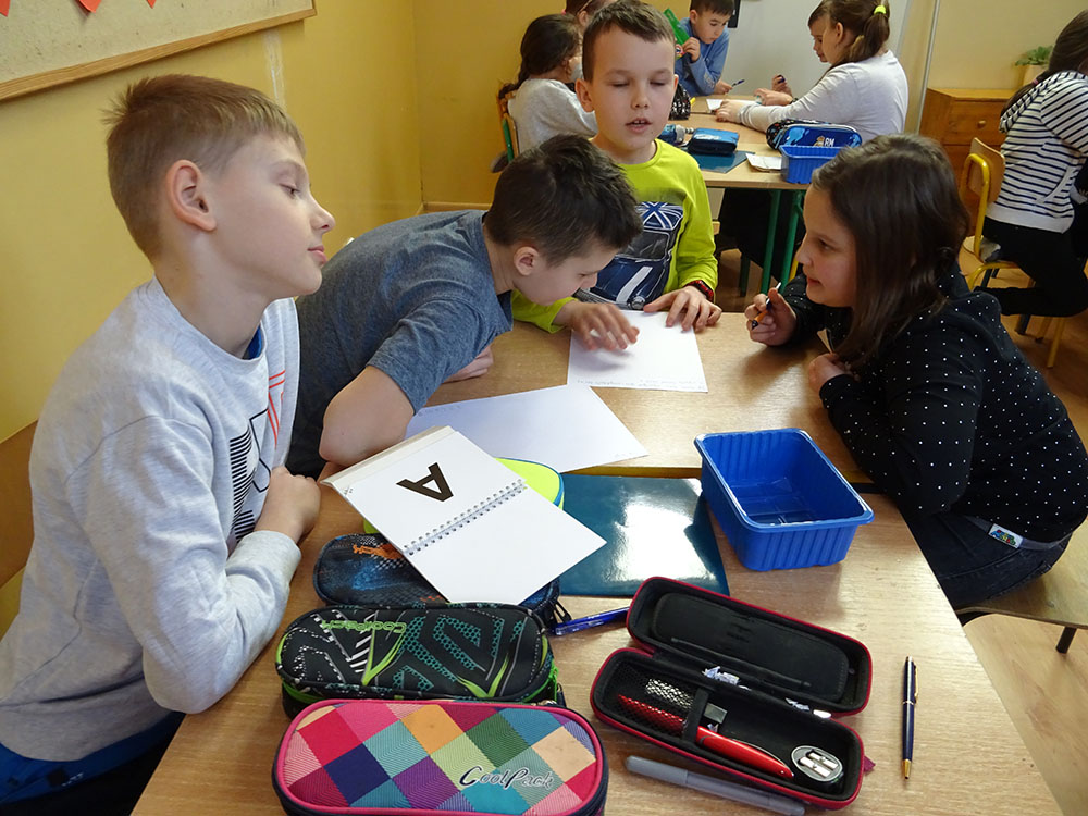 Uczniowie klasy VB realizowali na zajęciach języka polskiego projekt edukacyjny „Krasnal na karuzeli”. Redagowali opowieści o wrocławskich skrzatach i domowych duszkach z krainy snu, tworzyli ilustracje, makiety, wizytówki.