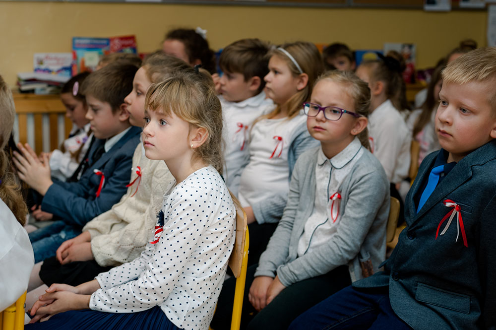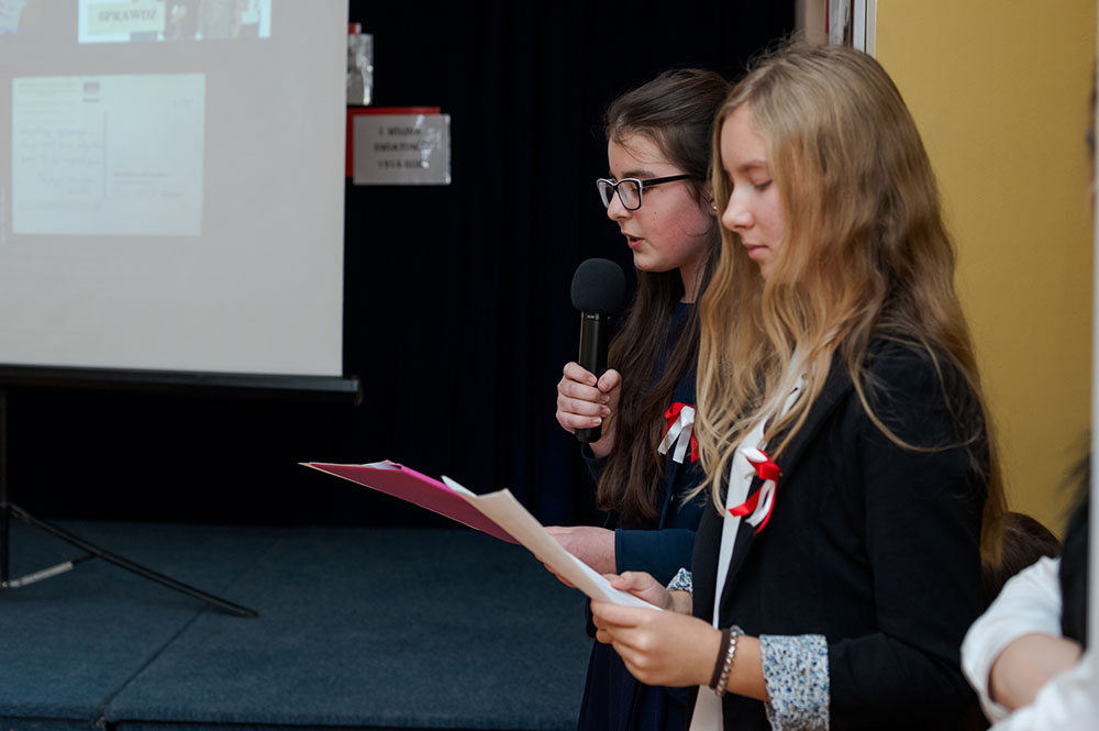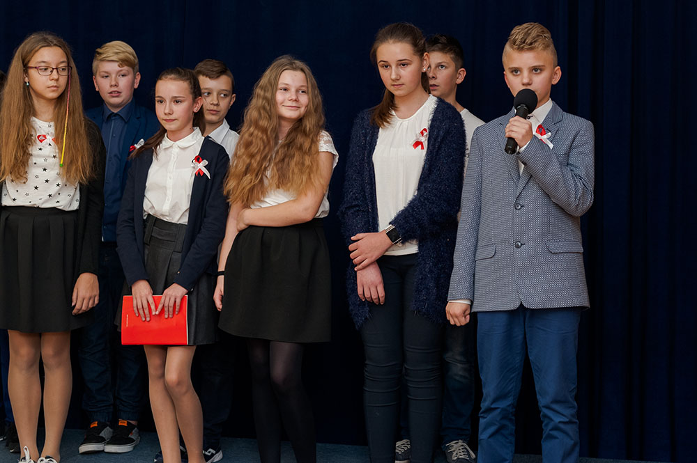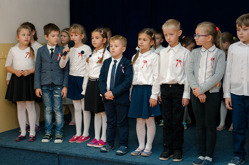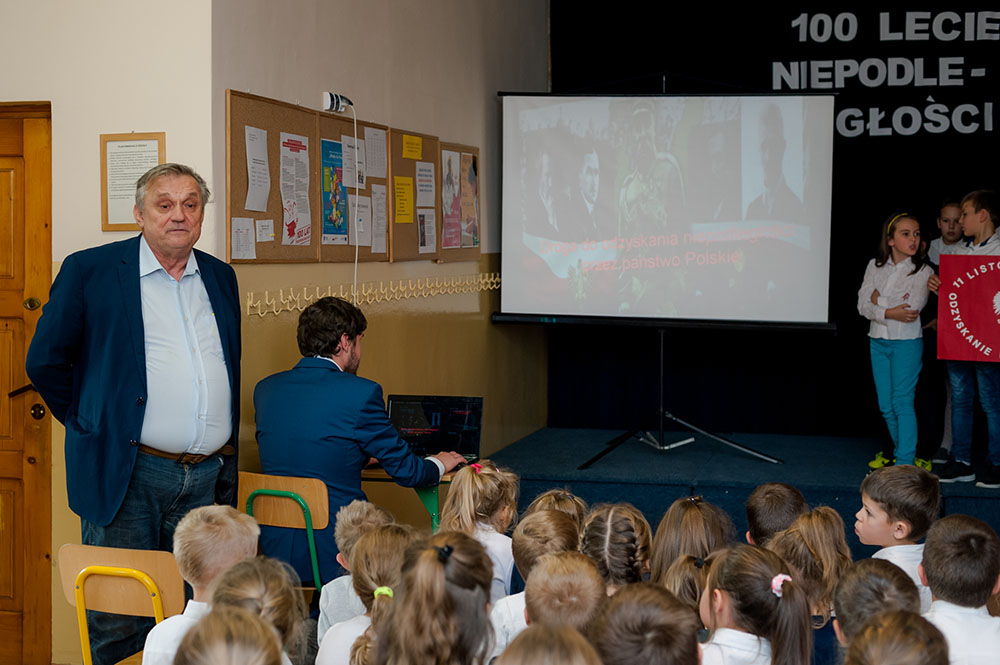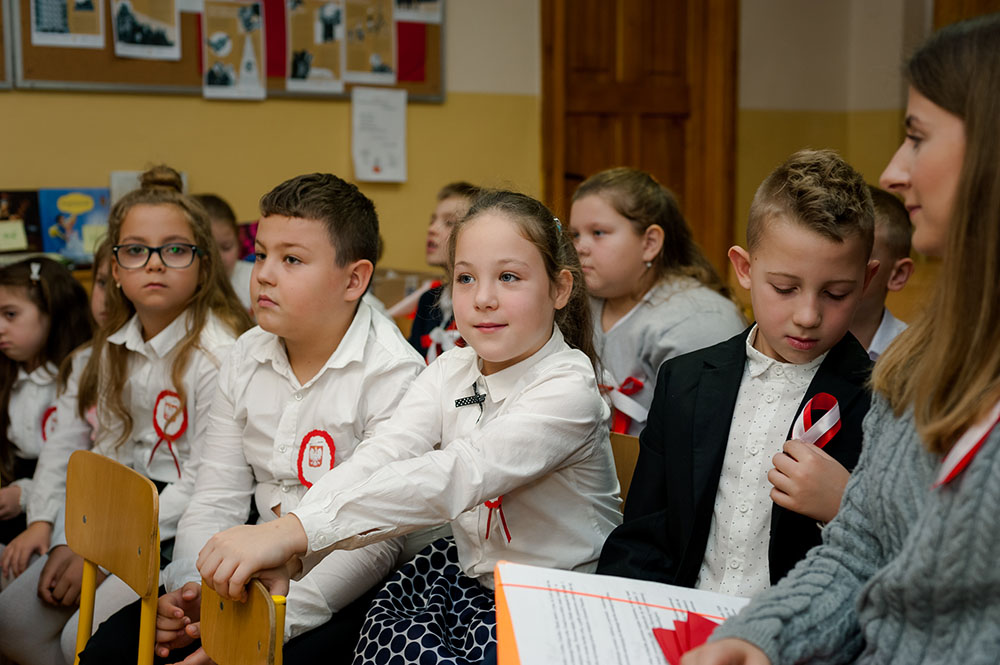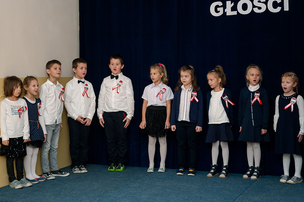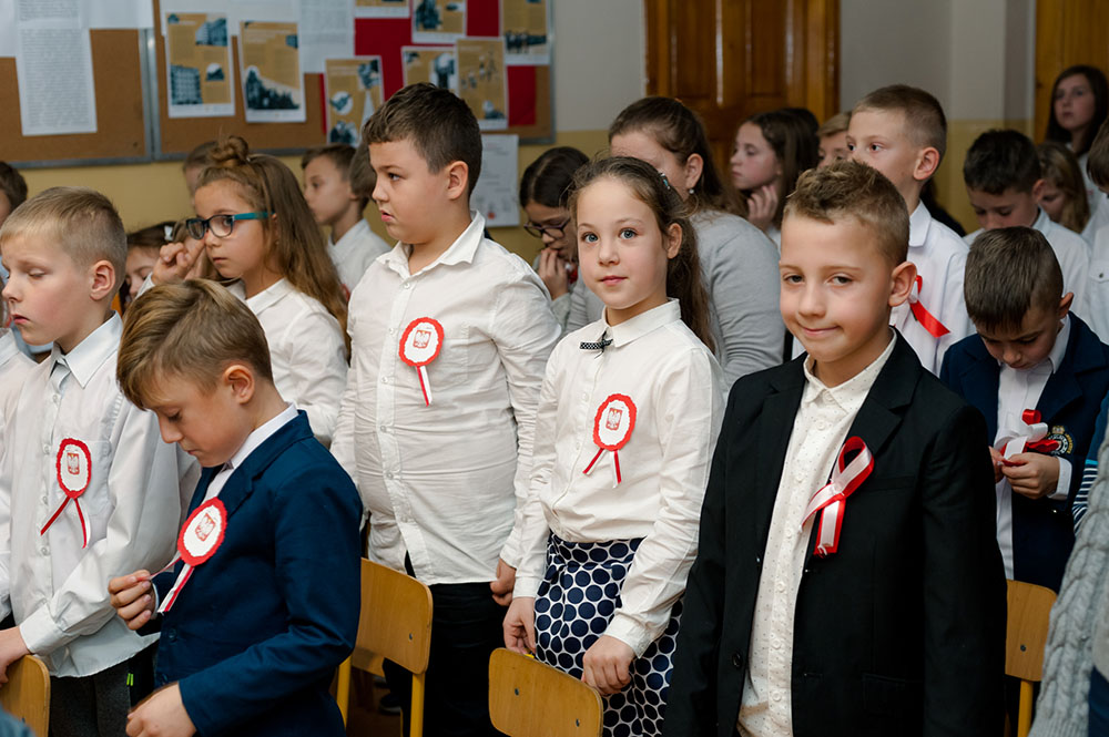 Z tej okazji w naszej szkole 7 listopada został zorganizowany Dzień Obchodów Święta Niepodległości. Uczniowie uroczyście uczcili tę rocznicę. Każda klasa wraz z wychowawcą przygotowała ciekawy program artystyczny, który został zaprezentowany w czasie apelu. Uczniowie śpiewali znane pieśni, przedstawiali plakaty, wiersze, prezentacje multimedialne oraz inscenizacje. Na zakończenie wszyscy wspólnie odśpiewali pieśń „Rota”. Obchody 100 rocznicy odzyskania niepodległości na pewno na długo zapadną w serca i w pamięć naszych uczniów. Wszyscy bardzo aktywnie wzięli w nich udział i włączyli się w przygotowanie święta.