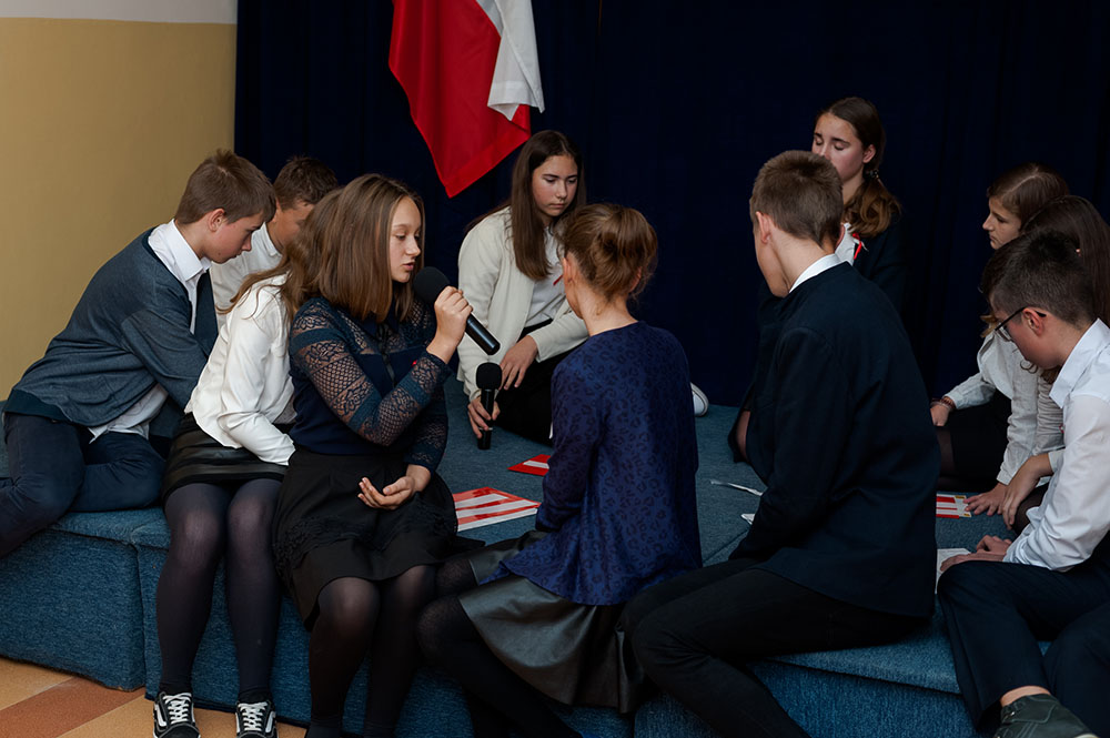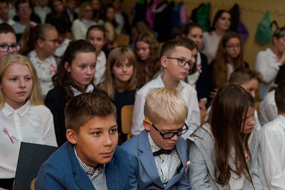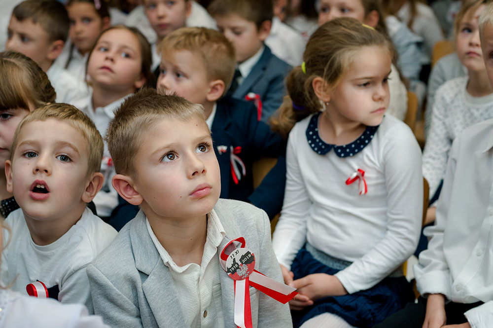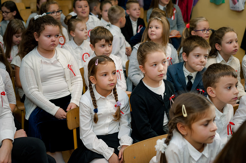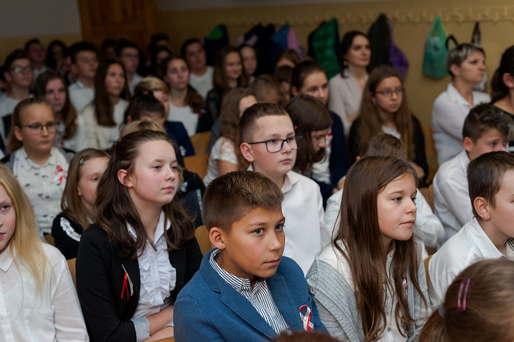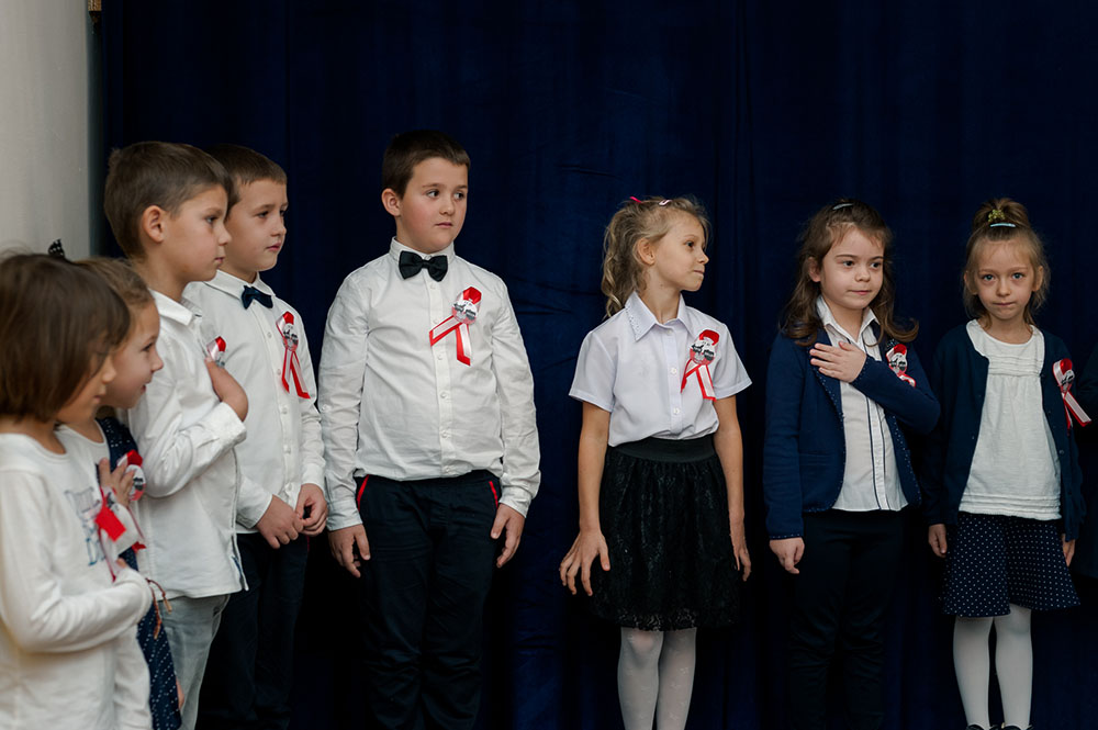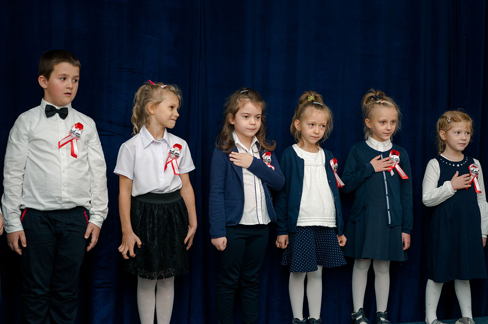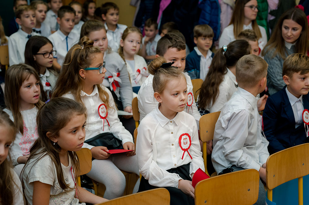 Z tej okazji w naszej szkole 7 listopada został zorganizowany Dzień Obchodów Święta Niepodległości. Uczniowie uroczyście uczcili tę rocznicę. Każda klasa wraz z wychowawcą przygotowała ciekawy program artystyczny, który został zaprezentowany w czasie apelu. Uczniowie śpiewali znane pieśni, przedstawiali plakaty, wiersze, prezentacje multimedialne oraz inscenizacje. Na zakończenie wszyscy wspólnie odśpiewali pieśń „Rota”. Obchody 100 rocznicy odzyskania niepodległości na pewno na długo zapadną w serca i w pamięć naszych uczniów. Wszyscy bardzo aktywnie wzięli w nich udział i włączyli się w przygotowanie święta.