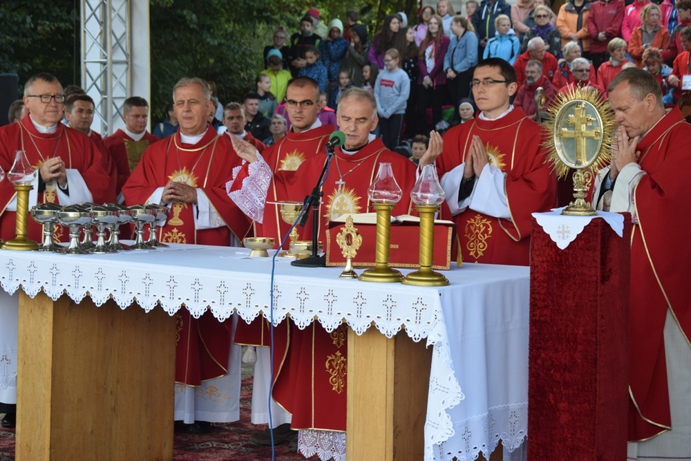 Głównym punktem wydarzenia była Msza Święta koncelebrowana przez wszystkich biskupów diecezji kieleckiej oraz wielu kapłanów. Podczas Najświętszej Ofiary homilię wygłosił Biskup Kielecki Jan Piotrowski. – „Ponad wszelką wątpliwość, Jezus wciąż dźwiga krzyż w swoich wyznawcach prześladowanych, torturowanych i uwięzionych. Dźwiga go także w tych wyśmianych, poniżonych i skazanych na różnego rodzaju agresję z powodu zachowywania Bożych Przykazań, chrześcijańskiej obyczajowości i życia na co dzień duchem błogosławieństw” – przypomniał biskup kielecki.