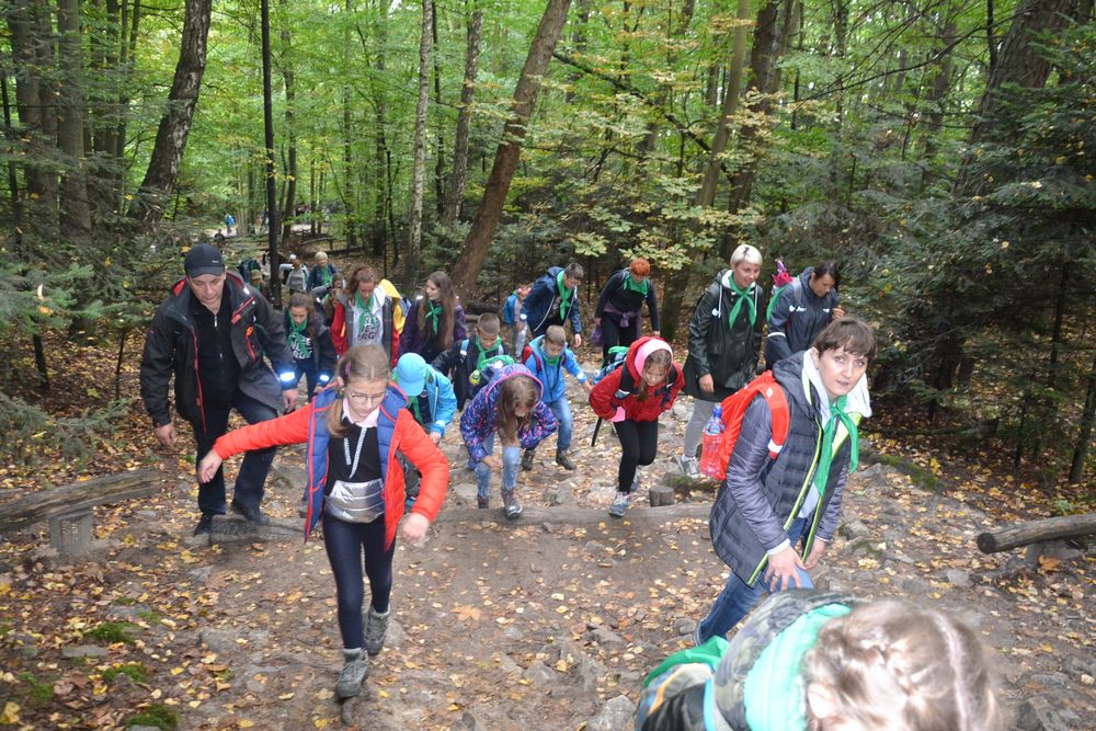 Nasza grupa liczyła 85 uczestników. W tym roku wędrowaliśmy trasą zwaną „Widokowa” liczącą 10 km. Wyruszyliśmy z Nowego Skoszyna przez Jeleniów, Starą Słupię, Nową Słupię na Święty Krzyż. Po drodze mogliśmy podziwiać piękno Gór Świętokrzyskich, a po dotarciu do celu pokłoniliśmy się relikwiom Drzewa Krzyża Świętego.
