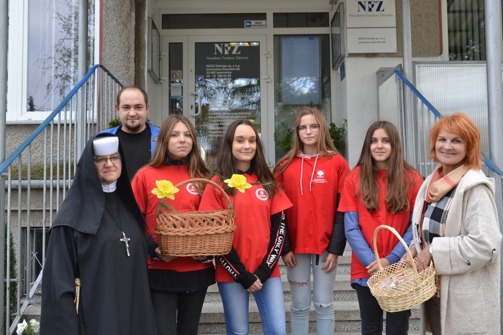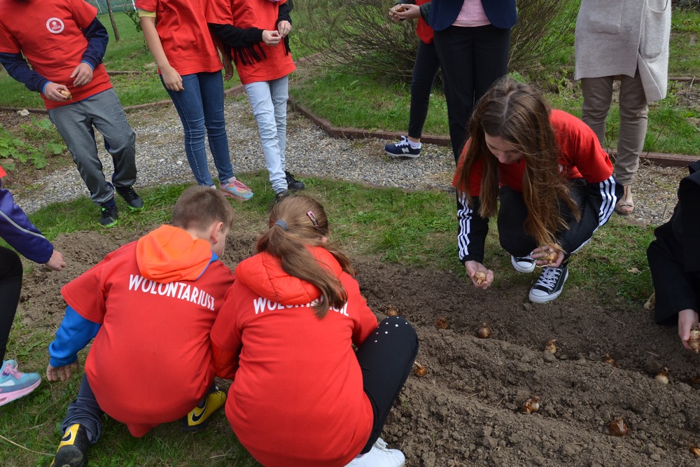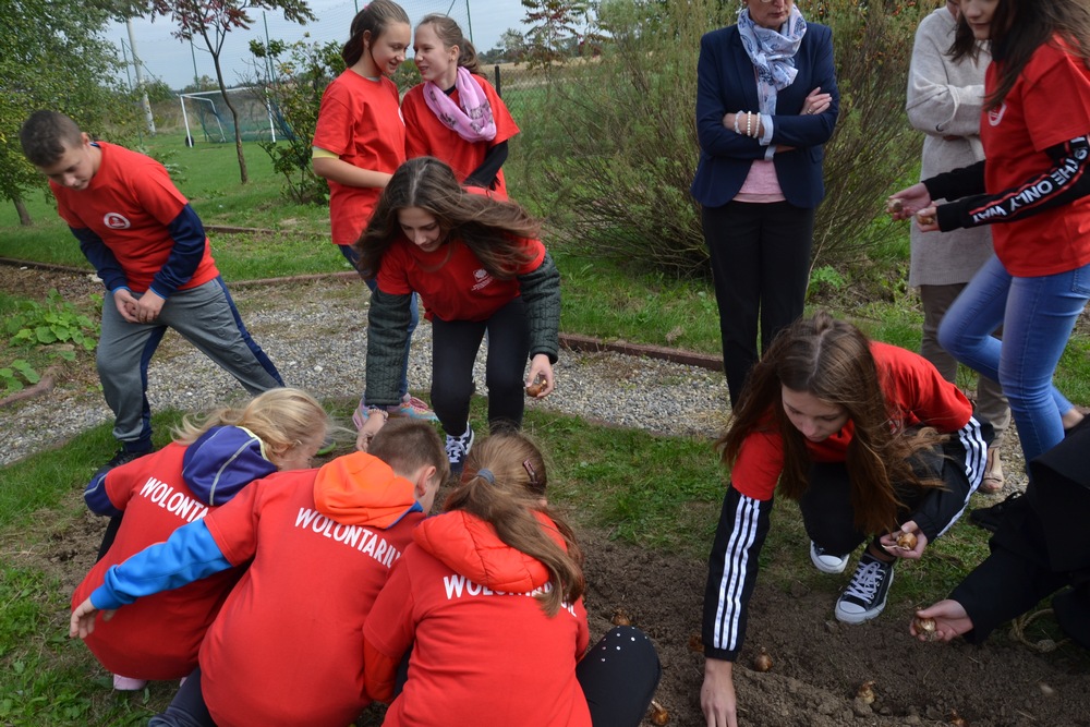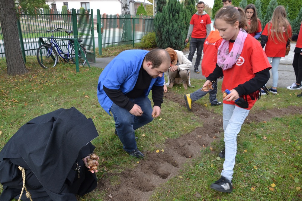 27 września b.r. przy naszej szkole, koło Kościoła w Iwanowicach oraz przy Ośrodku Zdrowia (już po raz ósmy w naszej parafii) miała miejsce akcja sadzenia żonkili. Uczestniczyli w niej wolontariusze Szkolnego Koła Caritas pod kierunkiem p. Renaty Jagiełki, przedstawiciele Hospicjum w Miechowie: siostra Benedykta, pani Ewa Wojciechowicz, oraz p. dyr. Anna Rerak. Najpierw wolontariusze przygotowali teren pod żonkile a później po przemówieniu p. Ewy przystąpili do sadzenia cebulek, które wzejdą wiosną i będą rozdawane za datki na rzecz Hospicjum.