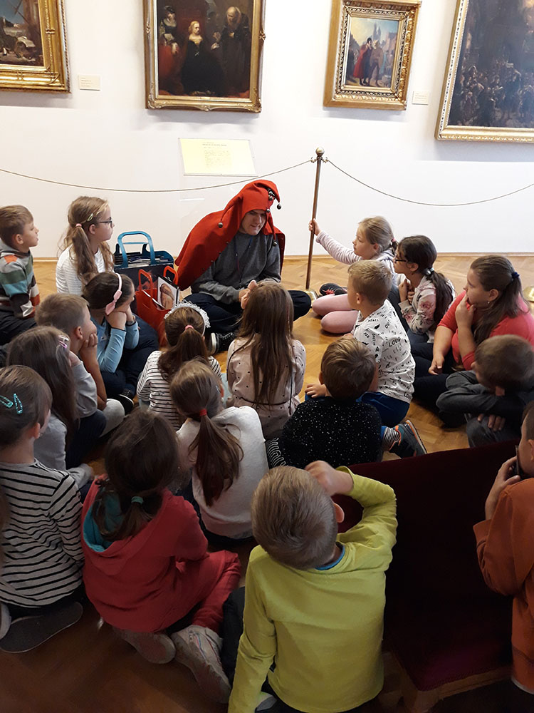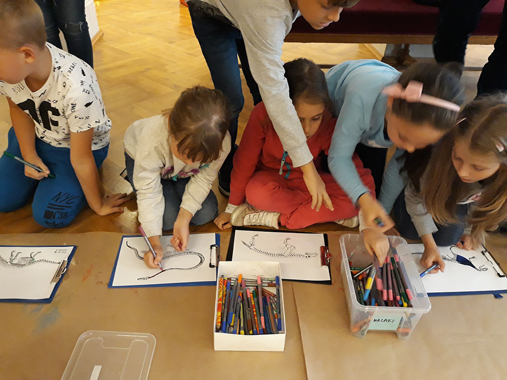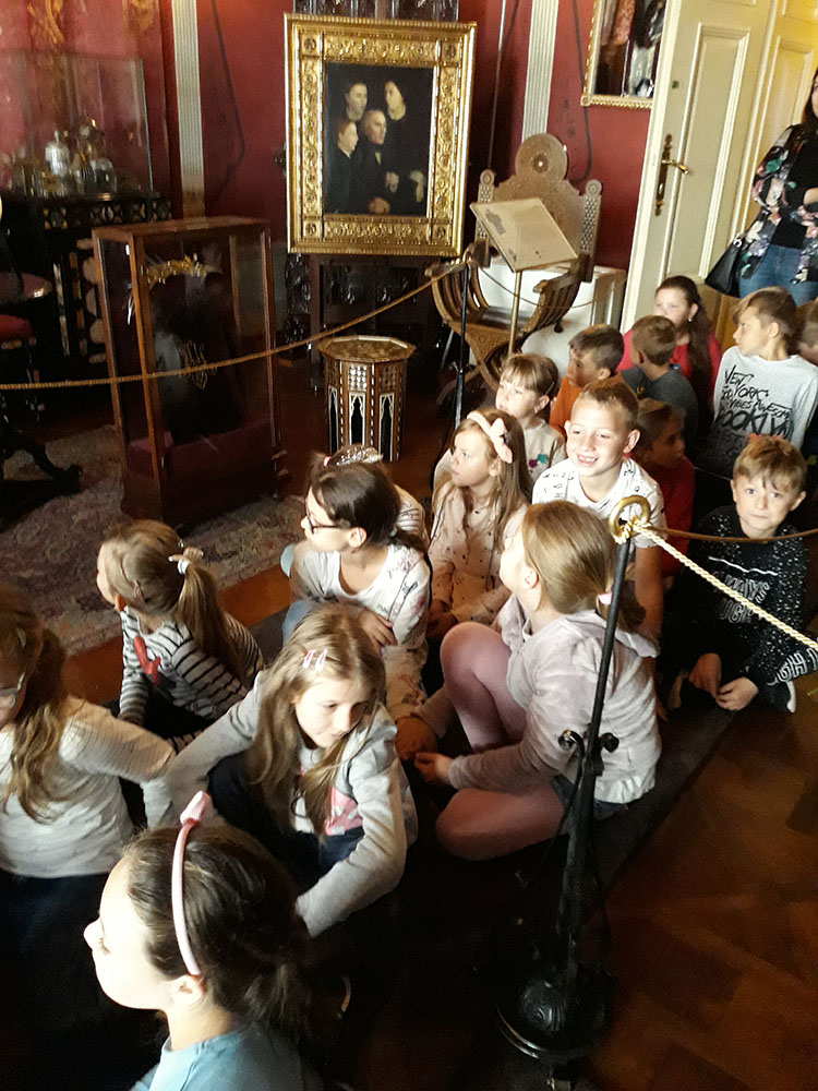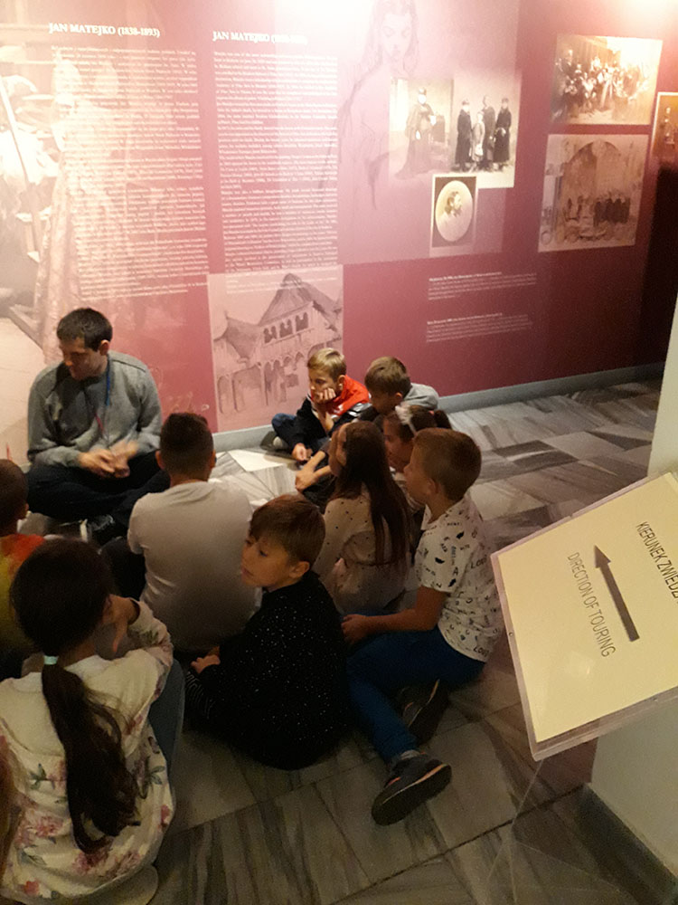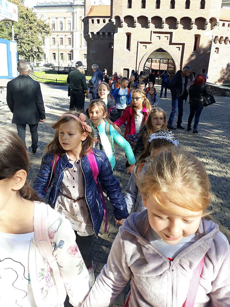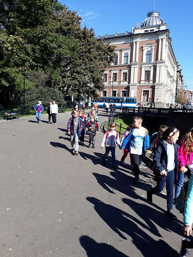 „Dwie wieże i Stańczyk – krakowskie legendy w Domu Jana Matejki” – taki tytuł nosiła lekcja muzealna, na którą w dniu 28.09.2018r. wybrali się uczniowie z klasy II i III. Po przybyciu na miejsce grupą zaopiekował się pan przewodnik, który w bardzo ciekawy sposób przybliżył uczniom postać Jana Matejki, jego życie i twórczość, a także opowiedział kilka legend krakowskich, takich jak: „ Legenda o Stańczyku”, „Legenda o dwóch wieżach mariackich”, „Legenda o wystających głowach”, „Legenda o Smoku Wawelskim”. Uczniowie nie tylko mogli się czegoś dowiedzieć, ale także wykazać się zasobem swojej wiedzy, gdyż przewodnik często zadawał pytania, na które uczniowie z ochotą odpowiadali. Na koniec każdy wziął udział w warsztatach plastycznych. Zadaniem było przekształcenie szkieletu dinozaura w smoka. W ten sposób każdy stworzył swoją legendę. Po zakończonej lekcji udaliśmy się na krótki spacer przez krakowski Rynek. Wycieczka sprawiła wiele radości, ale także wzbogaciła uczniów o nową wiedzę.