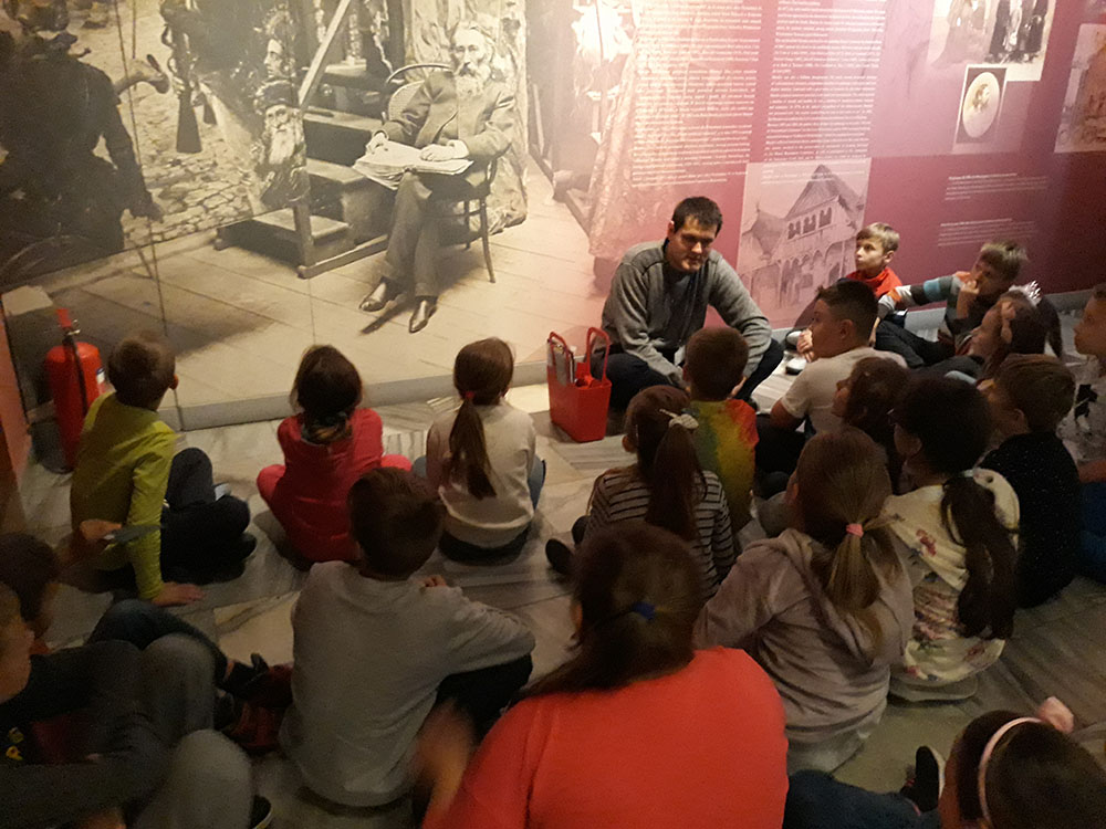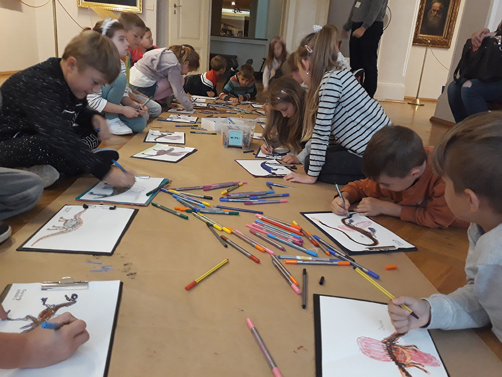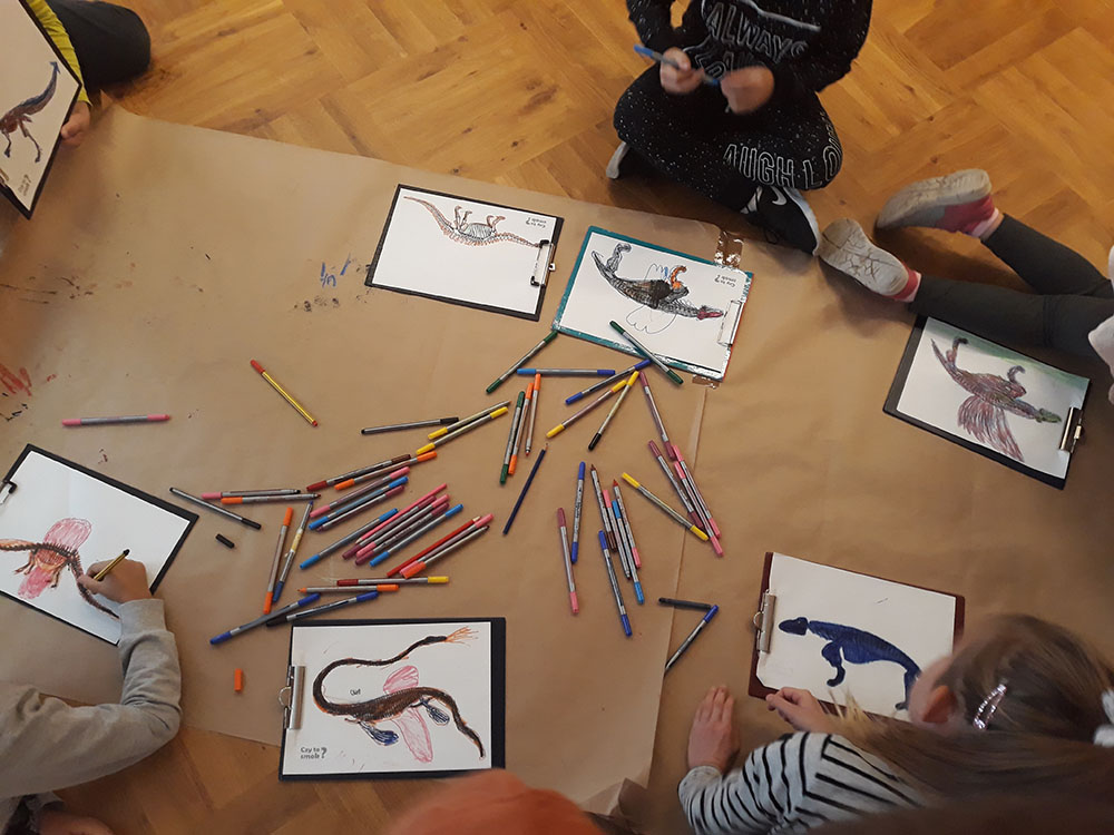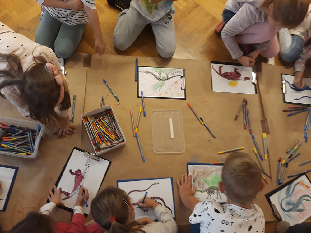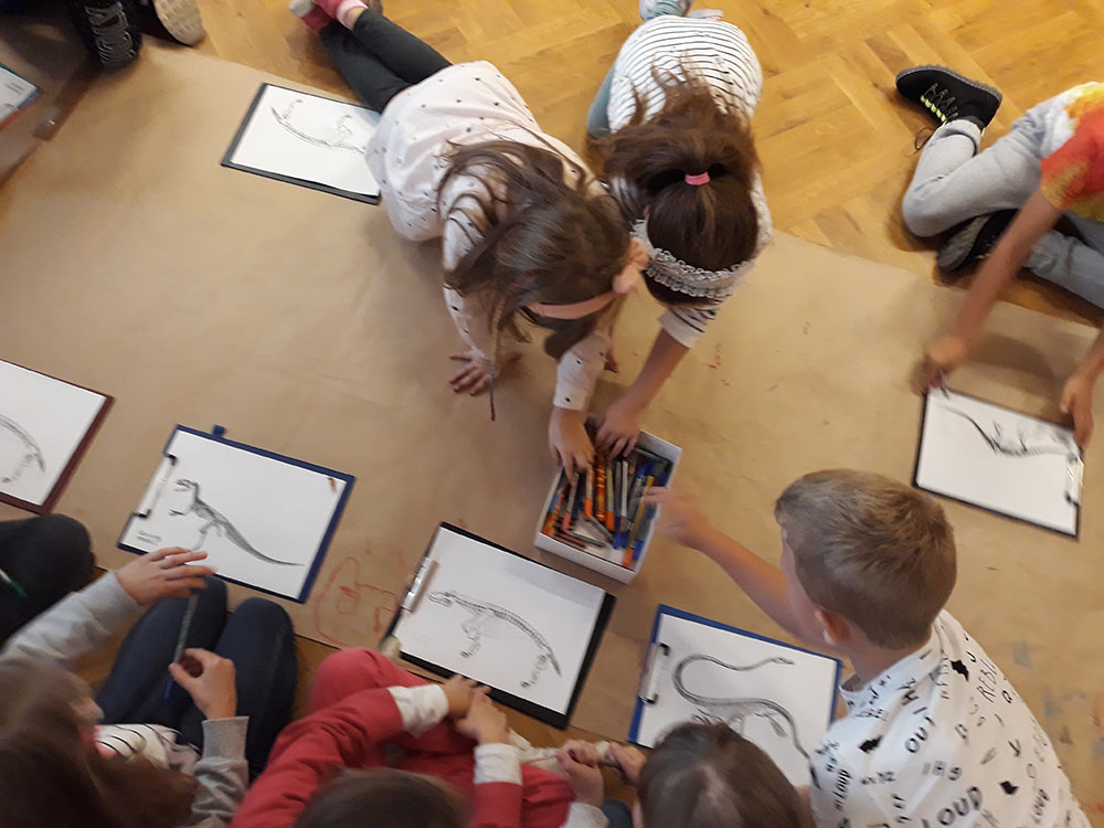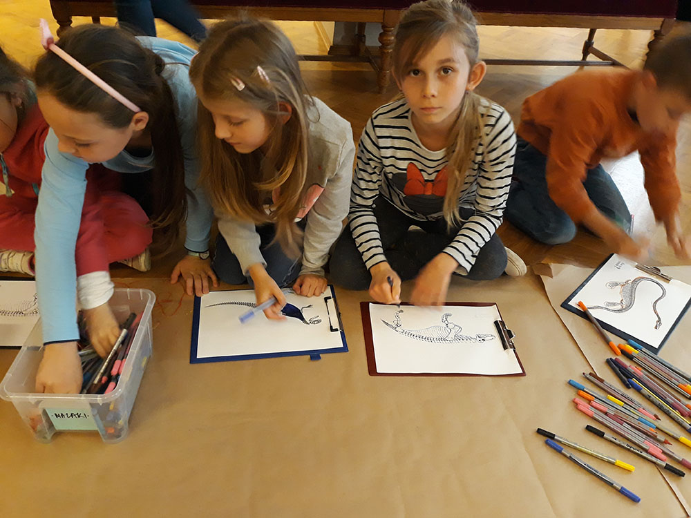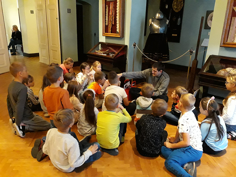 „Dwie wieże i Stańczyk – krakowskie legendy w Domu Jana Matejki” – taki tytuł nosiła lekcja muzealna, na którą w dniu 28.09.2018r. wybrali się uczniowie z klasy II i III. Po przybyciu na miejsce grupą zaopiekował się pan przewodnik, który w bardzo ciekawy sposób przybliżył uczniom postać Jana Matejki, jego życie i twórczość, a także opowiedział kilka legend krakowskich, takich jak: „ Legenda o Stańczyku”, „Legenda o dwóch wieżach mariackich”, „Legenda o wystających głowach”, „Legenda o Smoku Wawelskim”. Uczniowie nie tylko mogli się czegoś dowiedzieć, ale także wykazać się zasobem swojej wiedzy, gdyż przewodnik często zadawał pytania, na które uczniowie z ochotą odpowiadali. Na koniec każdy wziął udział w warsztatach plastycznych. Zadaniem było przekształcenie szkieletu dinozaura w smoka. W ten sposób każdy stworzył swoją legendę. Po zakończonej lekcji udaliśmy się na krótki spacer przez krakowski Rynek. Wycieczka sprawiła wiele radości, ale także wzbogaciła uczniów o nową wiedzę.