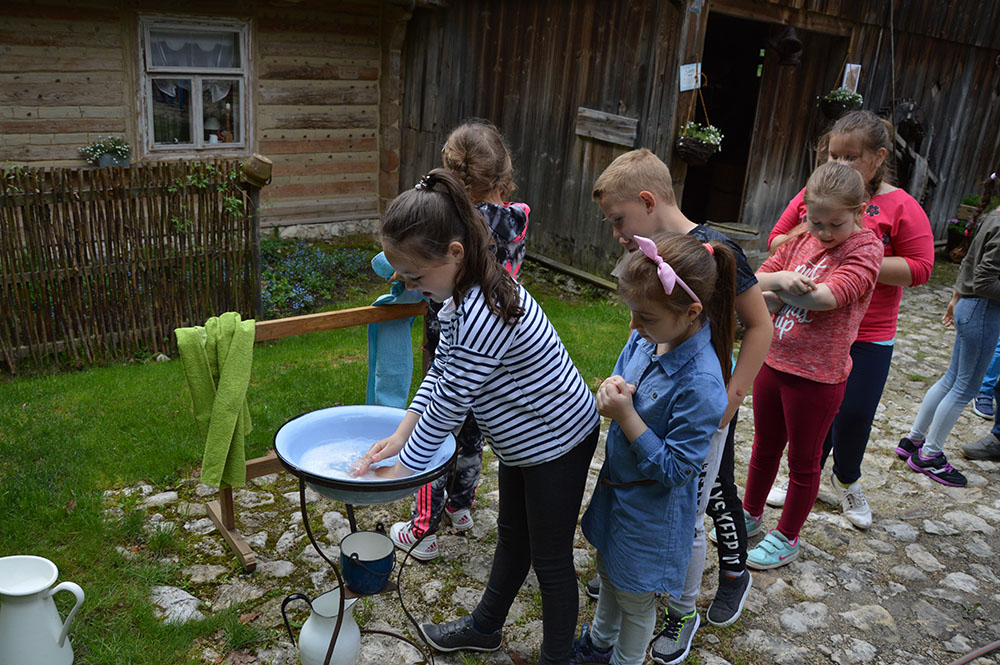 Dnia 26 kwietnia 2018 roku uczniowie klas 0-II wybrali się na wycieczkę do Osady Młynarskiej „Boroniówka” w Grodzisku na warsztaty pod nazwą „Od ziarenka do bochenka”. Po dotarciu na miejsce pierwszym zadaniem uczniów było umycie rąk w specjalnej polowej umywalce, co było dla nich dużym zaskoczeniem. Następnie każdy dostał fartuszek, aby w czasie prac nie pobrudzić sobie ubrań. Zadaniem dzieci było wyrobienie samodzielnie ciasta, rozwałkowanie go, a następnie wykrojenie różnymi foremkami ciasteczek. Po zakończonej pracy i ponownym umyciu rąk, przewodnik zabrał dzieci na spacer po osadzie i wytłumaczył, a także pokazał jak działa młyn wodny, który produkuje mąkę. W tym czasie piekły się ciasteczka, które na koniec dzieci dostały i mogły je zjeść. Zapach pieczonych ciasteczek czuć było wszędzie, a ich smak – niebo w gębie wszystkie dzieci wróciły zadowolone i bogatsze o nową wiedzę.