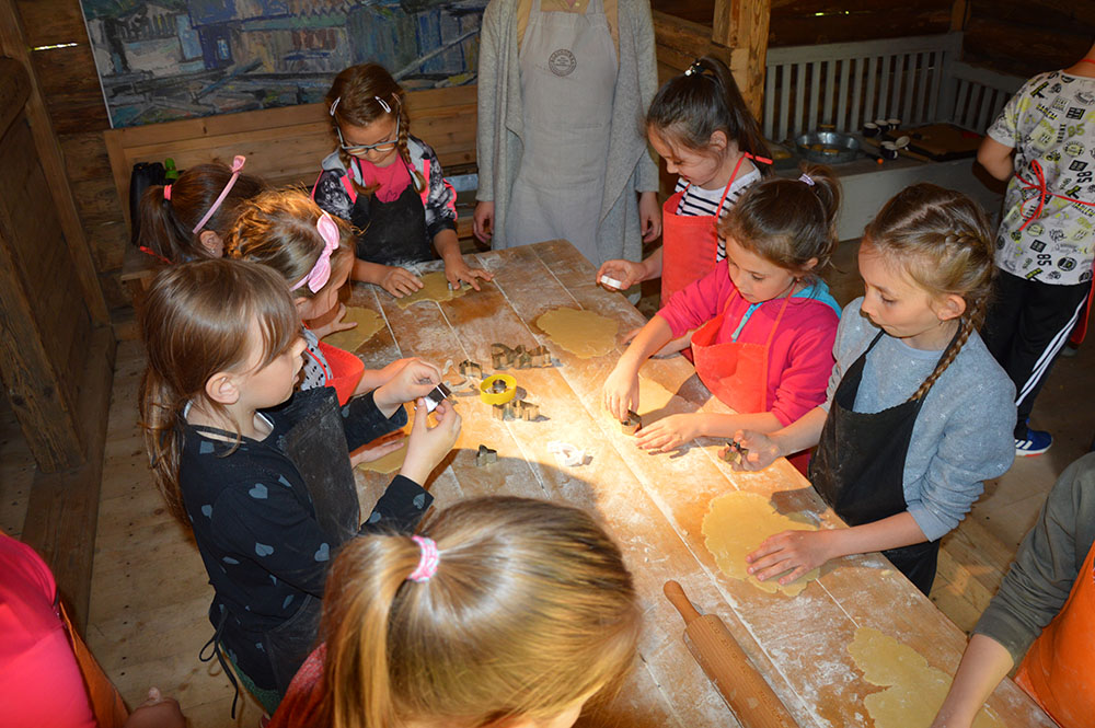Dnia 26 kwietnia 2018 roku uczniowie klas 0-II wybrali się na wycieczkę do Osady Młynarskiej „Boroniówka” w Grodzisku na warsztaty pod nazwą „Od ziarenka do bochenka”. Po dotarciu na miejsce pierwszym zadaniem uczniów było umycie rąk w specjalnej polowej umywalce, co było dla nich dużym zaskoczeniem. Następnie każdy dostał fartuszek, aby w czasie prac nie pobrudzić sobie ubrań. Zadaniem dzieci było wyrobienie samodzielnie ciasta, rozwałkowanie go, a następnie wykrojenie różnymi foremkami ciasteczek. Po zakończonej pracy i ponownym umyciu rąk, przewodnik zabrał dzieci na spacer po osadzie i wytłumaczył, a także pokazał jak działa młyn wodny, który produkuje mąkę. W tym czasie piekły się ciasteczka, które na koniec dzieci dostały i mogły je zjeść. Zapach pieczonych ciasteczek czuć było wszędzie, a ich smak – niebo w gębie wszystkie dzieci wróciły zadowolone i bogatsze o nową wiedzę.