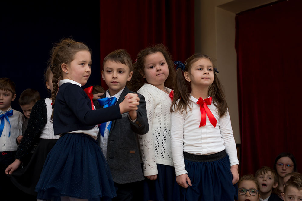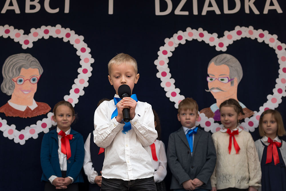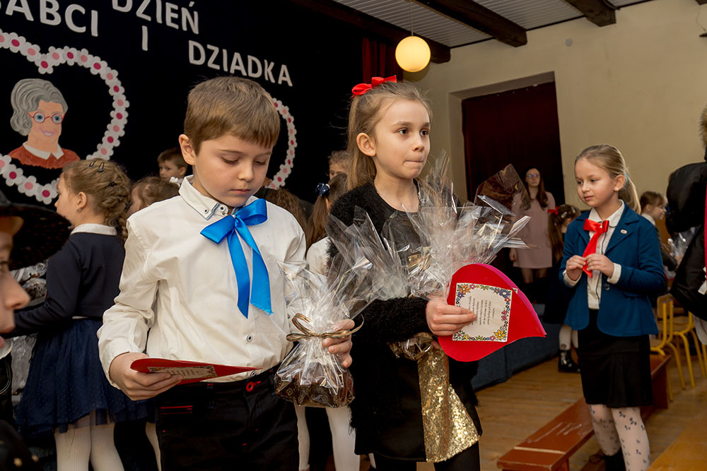 Tradycyjnie, jak co roku, 26 stycznia spotkaliśmy się wspólnie z naszymi kochanymi babciami i dziadkami aby uczcić ich wielkie święto: DZIEŃ BABCI I DZIADKA. Naszych szanownych gości ciepłymi słowami przywitała pani dyrektor Anna Rerak oraz złożyła gorące życzenia. Również głos zabrał pan Dyrektor Prowadzący Michał Znamirowski, który także obdarzył szczerymi życzeniami drogie babcie i drogich dziadków. Następnie dzieci z oddziału przedszkolnego oraz uczniowie z klas I-III zaprezentowali przygotowaną część artystyczną. Były wiersze, które zawierały mnóstwo wzruszających życzeń, inscenizacje, tańce i piosenki. Dzieci z wielkim zaangażowaniem wcielały się w swoje role, aby jak najlepiej wypaść przed swoją kochaną babcią i najlepszym na świece dziadkiem. W ten sposób mogły okazać swoje uczucia jakimi ich darzą. Po występach, uczniowie wręczyli swoim najbliższym pięknie wykonane laurki oraz słodkie niespodzianki. Dzieci czerpały ogromną radość z bycia razem, z tego, że mogły sprawić swoim dziadkom taką niespodziankę i tyle szczęścia. Nasi mili goście również nie kryli wzruszenia, przytulali i całowali swoje drogie małe pociechy. Widać było tą emocjonalną więź jaka ich łączy. Pięknym akcentem i podziękowaniami pani dyrektor zakończyła uroczystość.