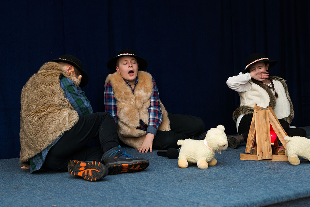 Uroczystość rozpoczął występ chóru „Pierwiosnek” prowadzony przez panią Justynę Musiałek. Uczniowie z klas młodszych zaprezentowali cztery kolędy. W dalszej kolejności widzowie obejrzeli przedstawienie „Jasełek” przygotowane przez panią Renatę Jagiełkę przy współpracy pani Urszuli Kubik. Swoje umiejętności gry na instrumentach zaprezentowali także nasi uczniowie. Usłyszeliśmy kolędy grane na skrzypcach, flecie poprzecznym, trąbce i saksofonie. Ciepłe słowa skierował do wszystkich zebranych ojciec franciszkanin Łukasz Ścieżka, życzył aby Boże Narodzenie było w nas przez cały rok. Na zakończenie zgodnie z tradycją wspólnie zaśpiewaliśmy kolędy.