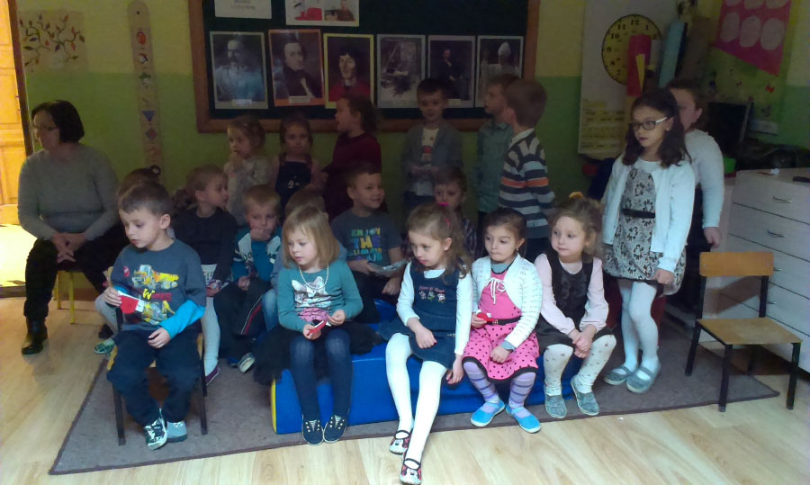 Z okazji obchodów 97 rocznicy odzyskania niepodległosci, dzieci z oddziału przedszkolnego brały udział w zajęciach patriotycznych. Przez cały tydzień uczyliśmy się hymnu polski, wykonywaliśmy flagi, godło polski oraz herb naszej stolicy. Każde dziecko już wie, że jest polakiem, mieszka w Polsce i mówi po polsku, dzięki tym, którzy walczyli o naszą wolność. Braliśmy również udział w uroczystej akademii, prezentując emblematy w barwach narodowych oraz nauczyliśmy się Katechizmu polskiego dziecka.